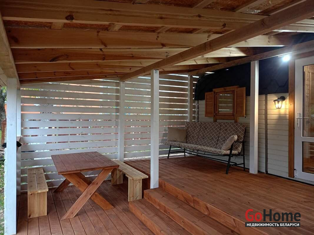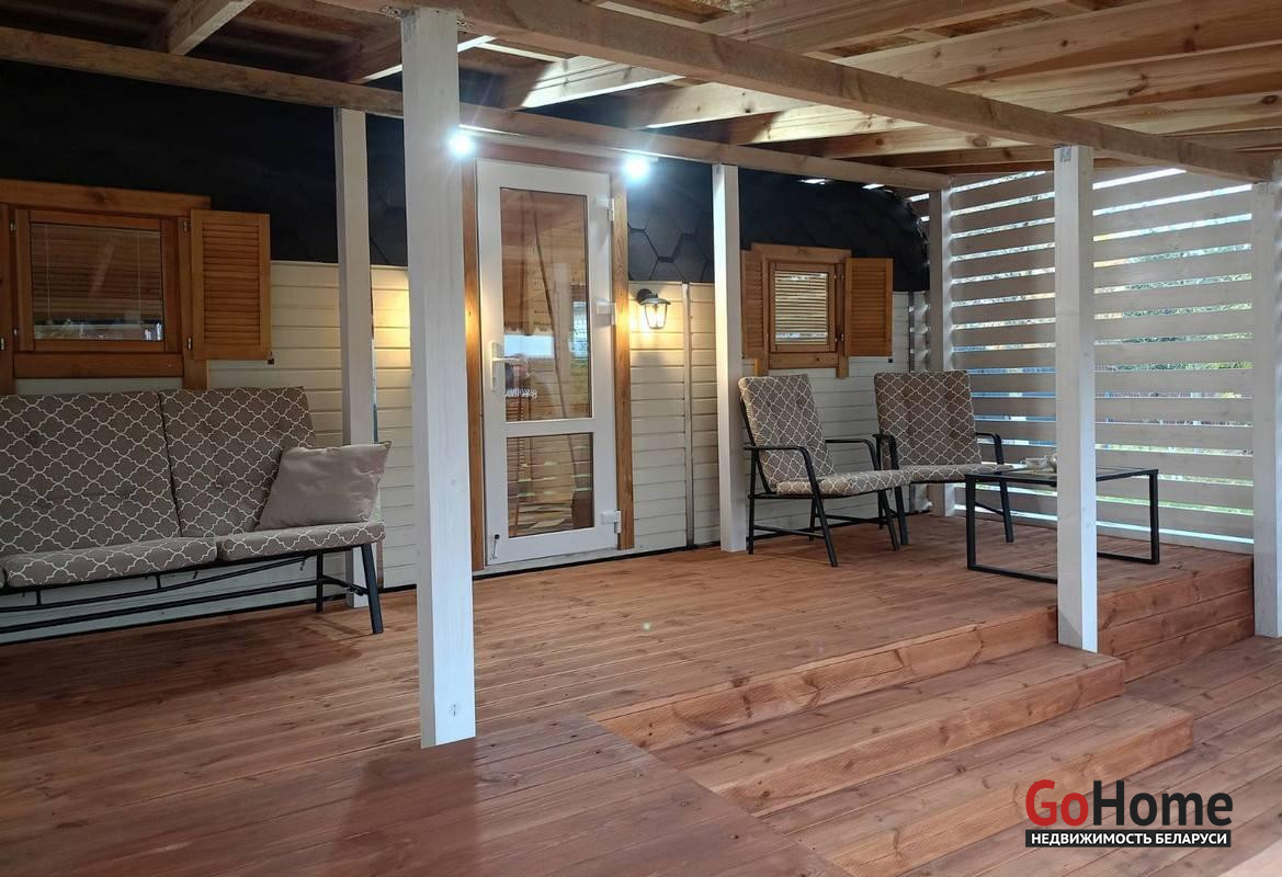 Фундамент: Ленточный, глубиной 1 метр, ниже точки промерзания, с бетонной плитой толщиной 15 см на песчаной подушке внутри. Коммуникации: Подведена вода (труба ПВХ), установлена автономная канализация из двух колодцев по 1.5 метра (общий объем 3 куб. м.). Отделка: Все деревянные поверхности внутри и снаружи обработаны качественной защитной пропиткой и покрыты износостойким бесцветным матовым лаком или краской по дереву. Террасная доска также обработана немецким маслом и окрашена. Электричество: Подключено от столба, внутренняя проводка выполнена из медного кабеля сечением 1.5*3.5. Установлены накладные розетки и выключатели. Сантехника: Полностью обновлена, установлена новая душевая кабина и современная сантехника. Участок и инфраструктура: