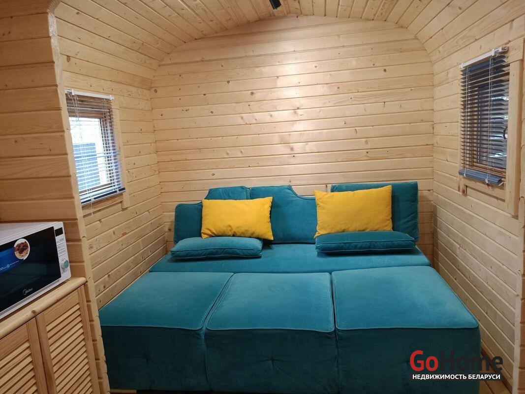 Первый домик (20 кв. м.) – это уютное пространство, продуманное до мелочей. Здесь вы найдете функциональную кухню, комфортное спальное место, уютную гостиную зону и собственный санузел. Из домика предусмотрен выход на просторную террасу, где так приятно проводить вечера в кругу близких или наслаждаться утренним кофе.
