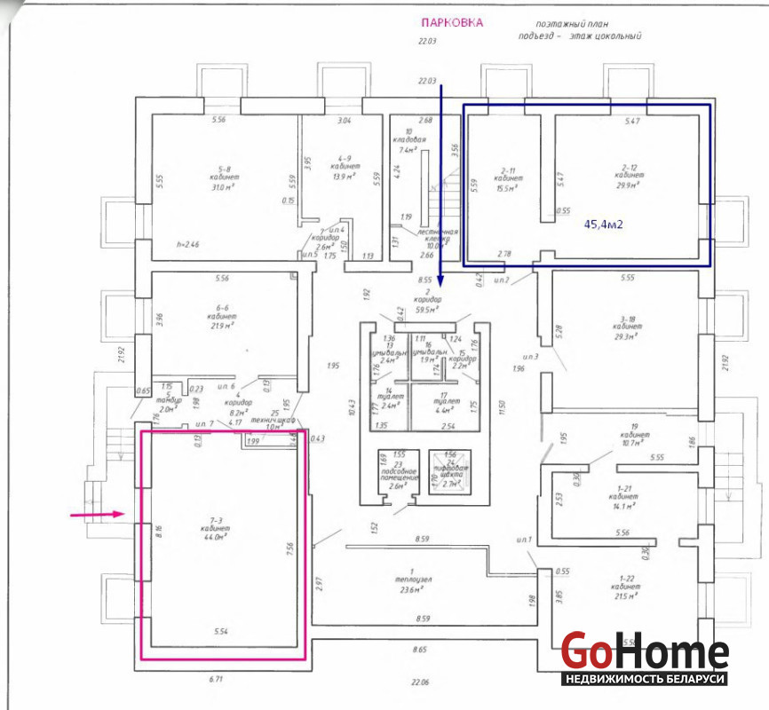 Помещение 44 м2, разделено на 2 комнаты. Выполнен новый современный ремонт. На окнах установлены роллеты. Интернет – оптоволокно, телефонные линии, кондиционер в каждом кабинете.