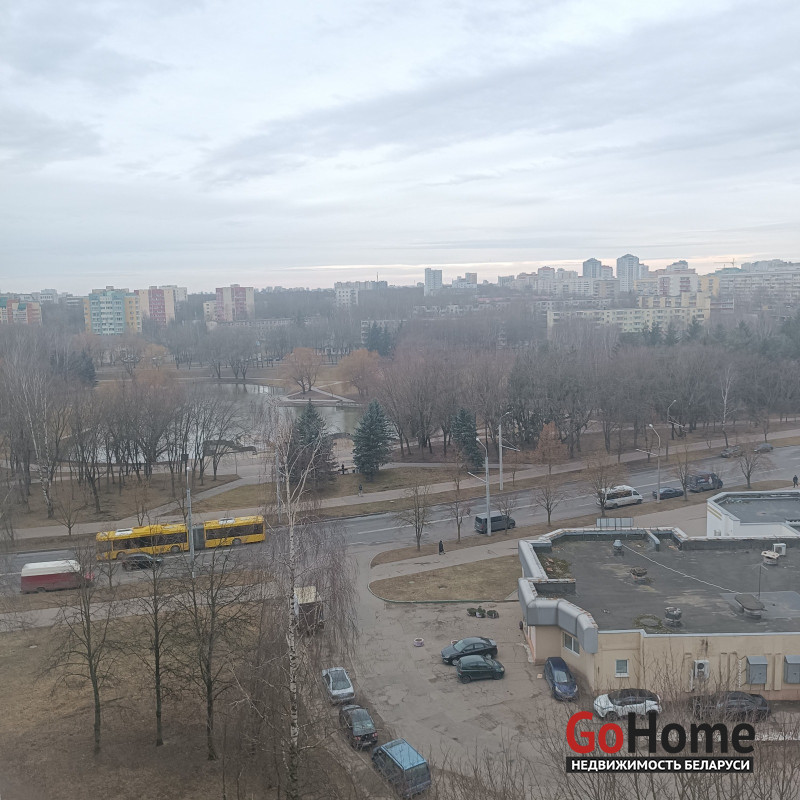 Красивый вид из лоджии на водохранилище, где плавают утки и лебеди, а другие три окна выходят на противоположную сторону во двор.