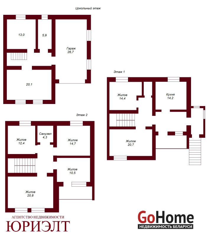 — 6 жилых комнат, расположенных на разных уровнях