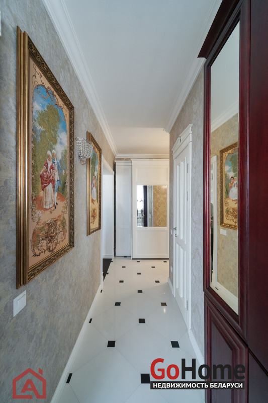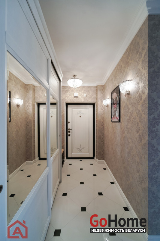 Прихожая встречает безупречным стилем: качественный пол, красивые двери, элегантные светильники и надежная металлическая входная дверь.