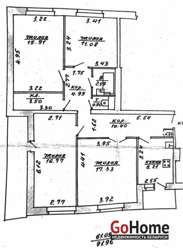 Площадь 91,96/61,09/8,21м2