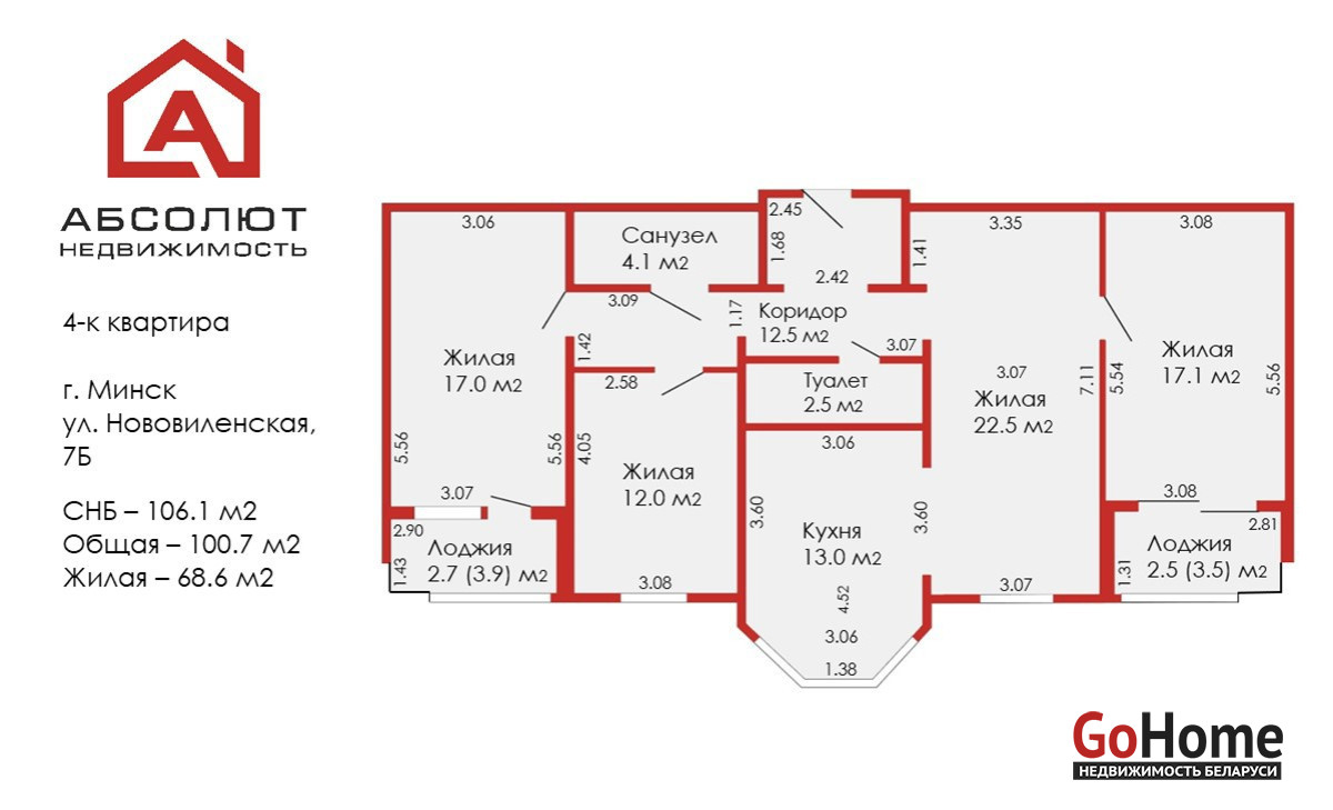 Просторная (106 кв.м) и очень светлая квартира с узаконенной индивидуальной перепланировкой и современным ремонтом.