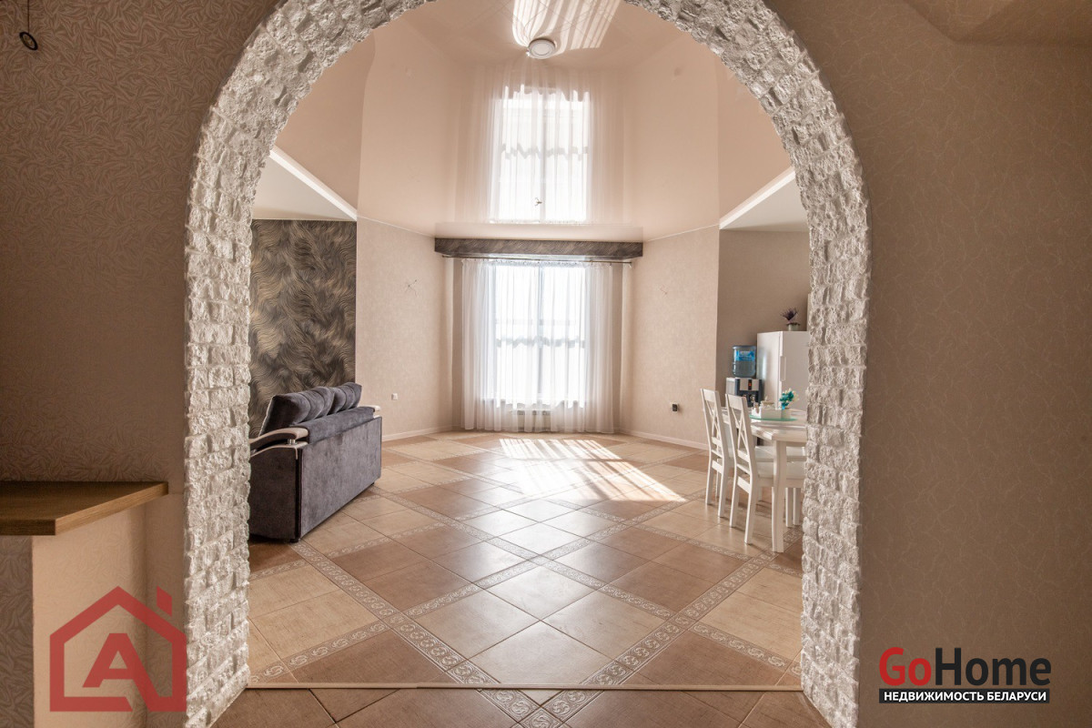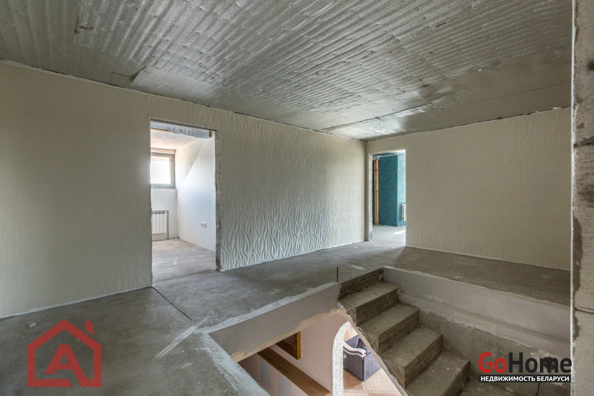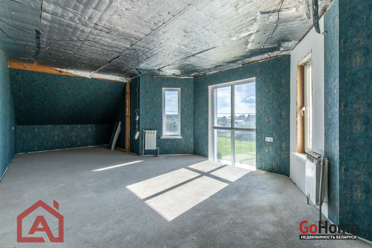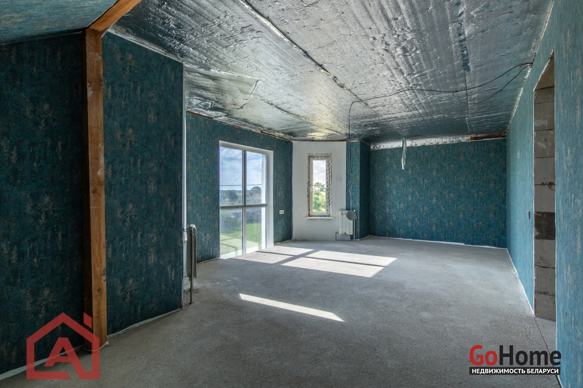 Дом: на участке стоит блочный дом 2013 года постройки. Дом теплый, уютный, просторный, светлый. В доме выполнен современный стильный ремонт из качественных материалов. На первом этаже имеется просторный коридор, 2 жилые комнаты, большая кухня-гостиная 51,1 м2, совмещенный санузел, теплый пол. На мансардном этаже 3 комнаты, гардеробная, санузел. Выполнена вся черновая отделка, поклеены обои, сделана стяжка под любое покрытие, полностью разведена электрика и отопление. Высота потолков- 2,90м. (1-й этаж), 2,46 (мансардный этаж). Фундамент – ФБС. Перегородки и стены-газосиликатные блоки. Панорамные окна-зеркальные стеклопакеты. Перекрытия деревянные.