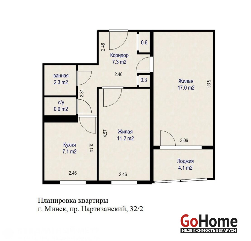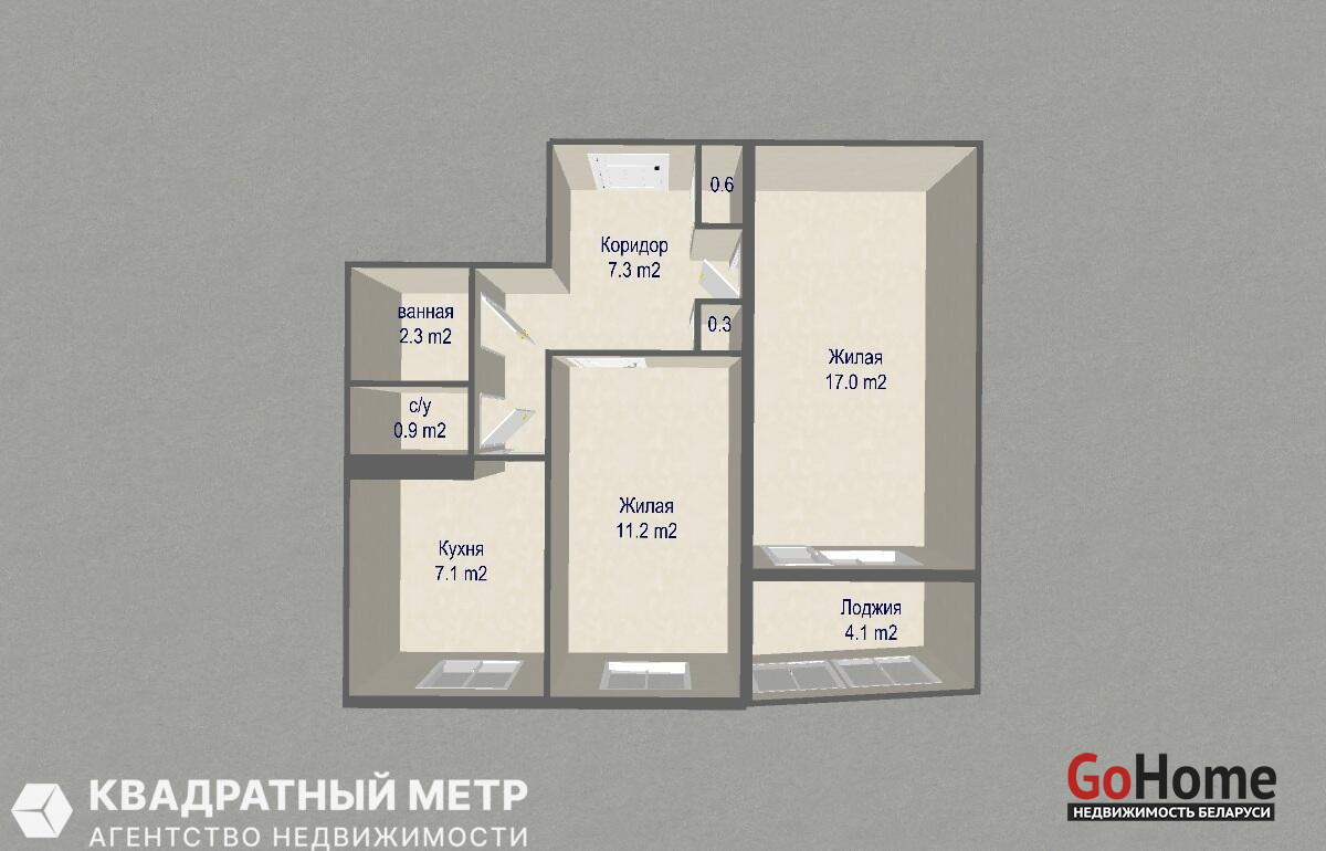 1. Отличная планировка: общая площадь по СНБ – 48,8 м2, жилая площадь 28,2 м2, большая застекленная лоджия - 4,1 м2