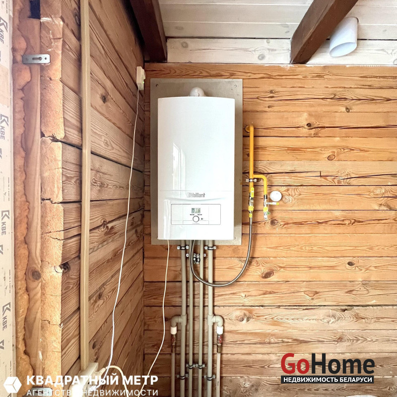 В дом проведен газ, вода, свет 220 и 380 Вт., сделана канализация на два колодца. Установлен двухконтурный газовый котел Vaillant.