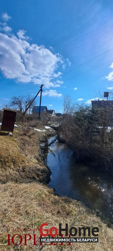 Высокий ровный участок, яблони, груша, плодово- ягодные насаждения, сразу за участком речка, свой электрический столб. Недалеко магазин и остановка общественного транспорта.