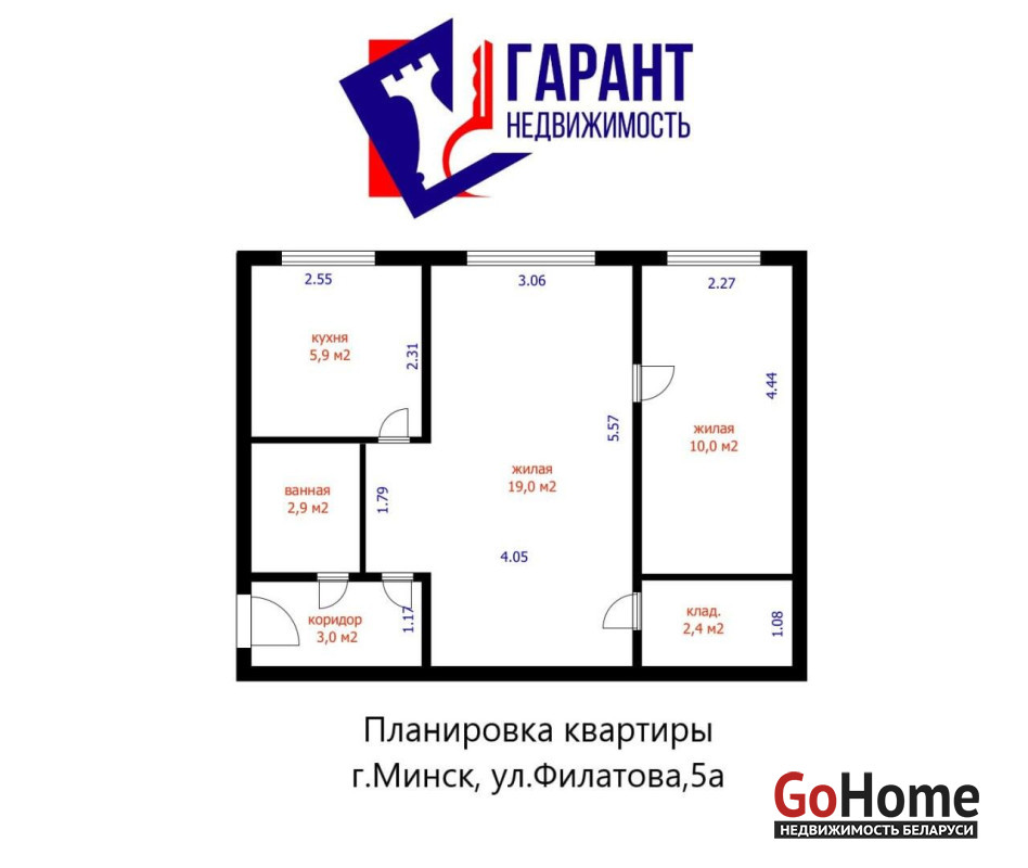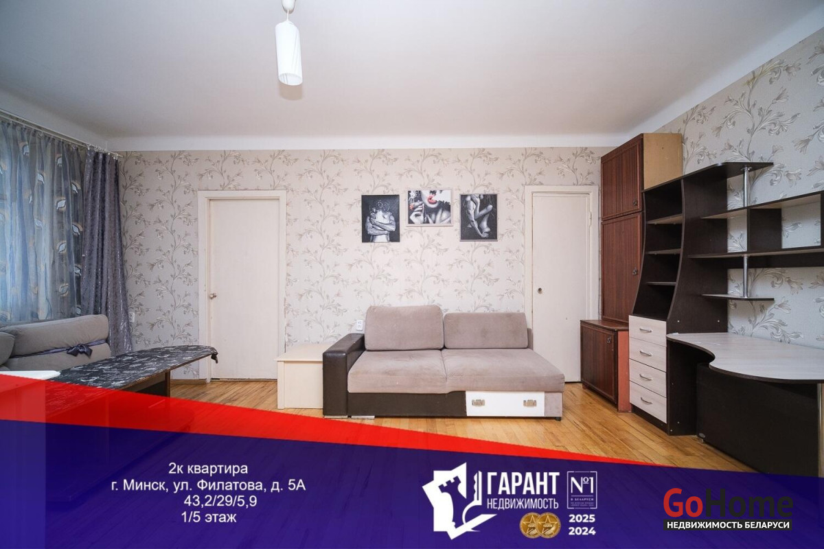 Адрес: ул. Филатова, 5АЭтаж: 1/5Площадь комнат: 10 м2 и 19 м2Кухня: 5.9 м2Санузел: совмещённый