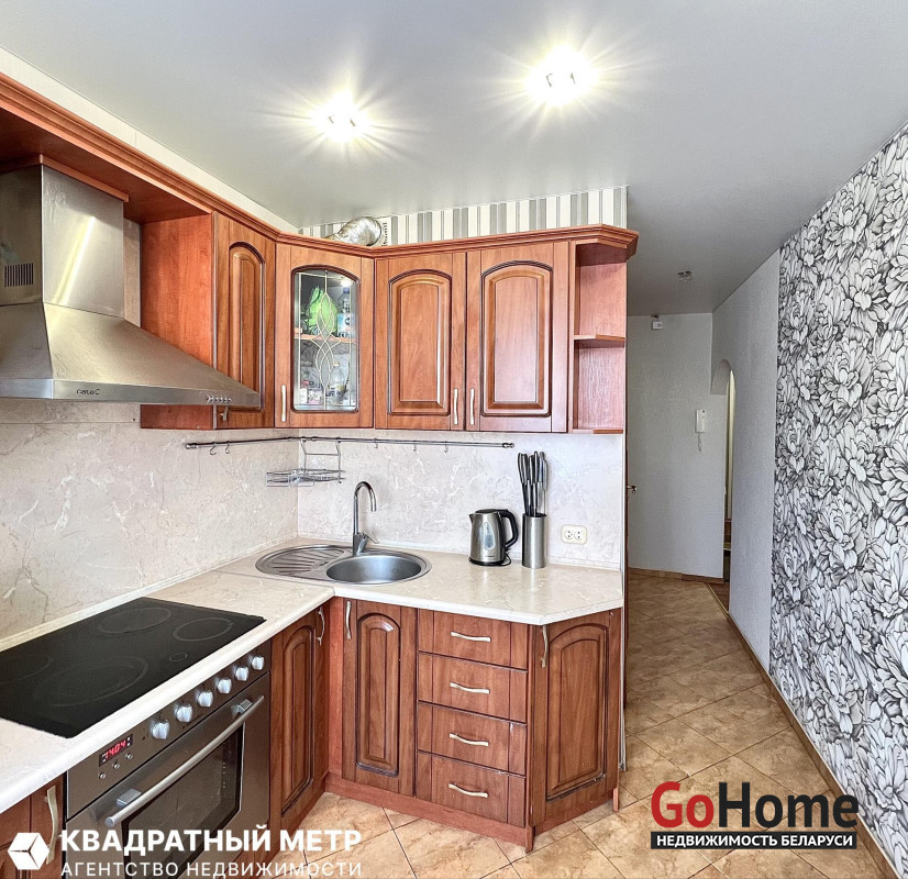 В квартире остается кухня с бытовой техникой, шкафы-купе в коридоре.