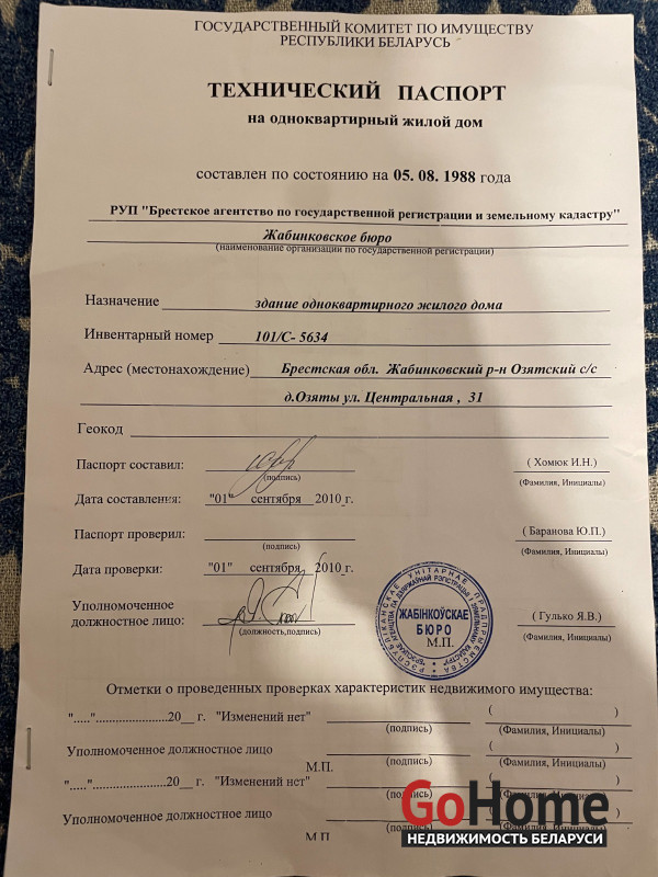 Продается дом с участком в аг. Озяты, с отлично развитой инфраструктурой (асфальтированная дорога от самого дома до райцентра Жабинка, обл. центр Брест, г. Кобрин, трасса М1), поликлиника в которой даже стоматолог, церковь, два магазина, беларусбанк, белпочта, детский сад, в соседней деревне школа. Пилорама, сельхоз предприятие подчиненное Брестскому мясокомбинату. Ходят автобусы и маршрутные такси.