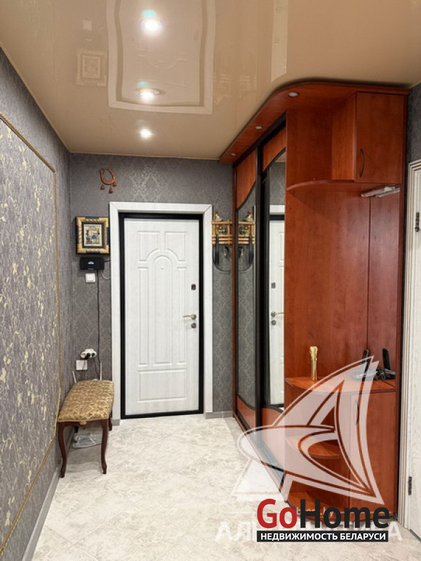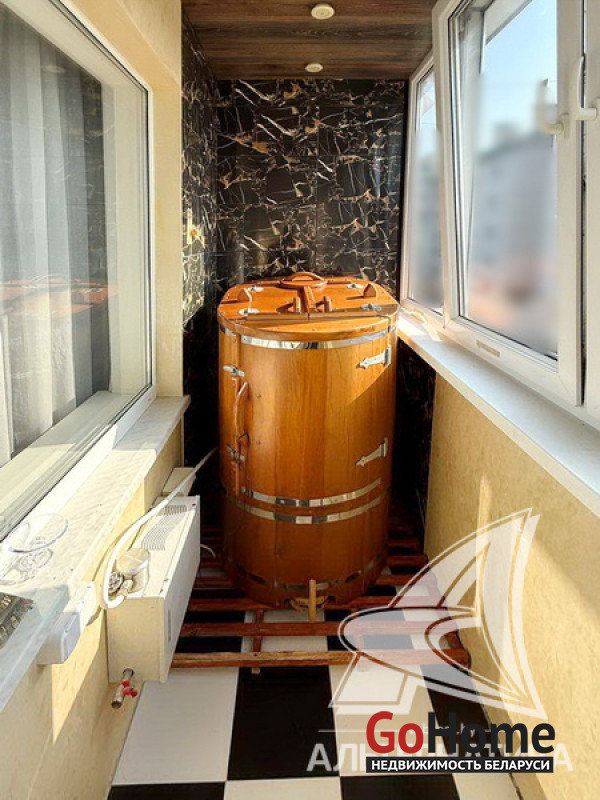 2-комнатная квартира, г. Жабинка, ул. Центральная, 1988 г.п., 3 / 4 панель, 57,8 / 56,1 / 30,9 / 11,6, санузел раздельный, лоджия застеклена, подвал, стеклопакеты, межкомнатные двери - МДФ, входная дверь металлическая, натяжные потолки с разноплановой системой освещения, полы (положены на стяжку) - ламинат и плитка (в кухне), стены оклеены обоями, в санузле заменен полотенцесушитель, заменены сантехнические трубы, душевая кабина, установлены новые радиаторы, телефон, видеодомофон. Кухонный гарнитур, варочная поверхность, духовой шкаф, вытяжка, посудомоечная машина, микроволновая печь, холодильник, морозильная камера, стиральная машина, корзина для белья, стол (в кухне), два шкафа-купе (в прихожей), диван (в зале), электрокамин, корпусная мебель (в комнате, в спальне), кедровая бочка (на лоджии), фитосауна. Квартира с хорошим ремонтом. Чистый подъезд. Система видеонаблюдения. Лот - 260440
