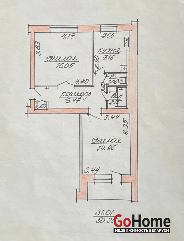 •общая площадь-50.35