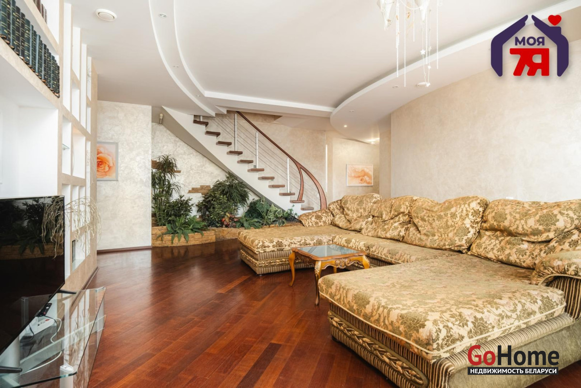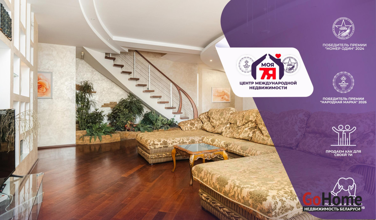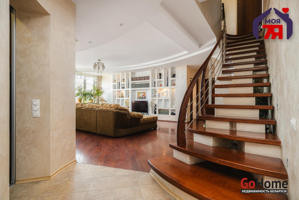 -Двухуровневая квартира с общей площадью 218,5 кв.м. Жилая - 126,5 кв.м. Стильная и элегантная, она имеет отличную планировку и полностью готова к проживанию. Высота потолков - 2,91 м.