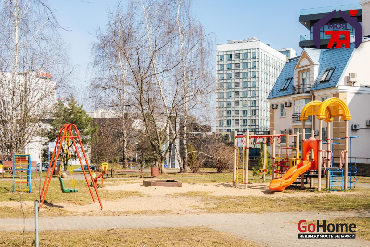 -Все важные объекты находятся в пешей доступности: рядом школа, гимназия, детский сад, ведущие учебные заведения (институт бизнеса БГУ, экономико-правовой факультет БИП), супермаркеты, аптеки, банки, салоны красоты, а также культурные и развлекательные центры – музеи, кинотеатры, рестораны и уютные кафе. В нескольких минутах находятся ТРЦ «Galleria Minsk» и отель «Double Tree by Hilton».