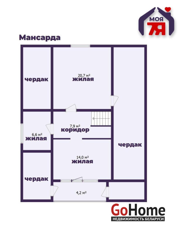- На мансардном этаже расположены три комнаты, идеально подходящие для спален или кабинетов. Также там есть застекленный балкон - место, где можно наслаждаться утренним кофе, любуясь окружающими пейзажами.