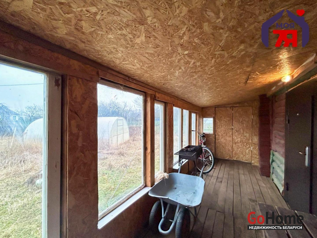 - Продумано место для отдыха где располагается беседка из бруса. Также новым владельцам остается теплица из поликарбоната.