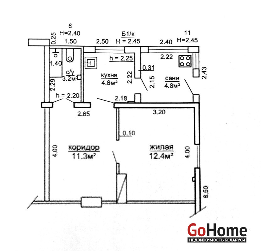 Дом выполнен из таких материалов как: Фундамент —бутобетон. Перекрытия деревянные. Материал стен — брус . Кровля оцинкованная сталь. Окна ПВХ стеклопакеты. Количество комнат – 2 ( 11.3 м2/ спальня 12.4 м2).Кухня 4.8 м2.
