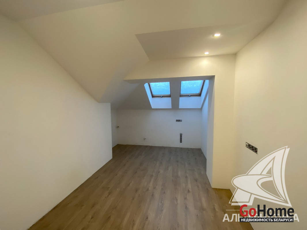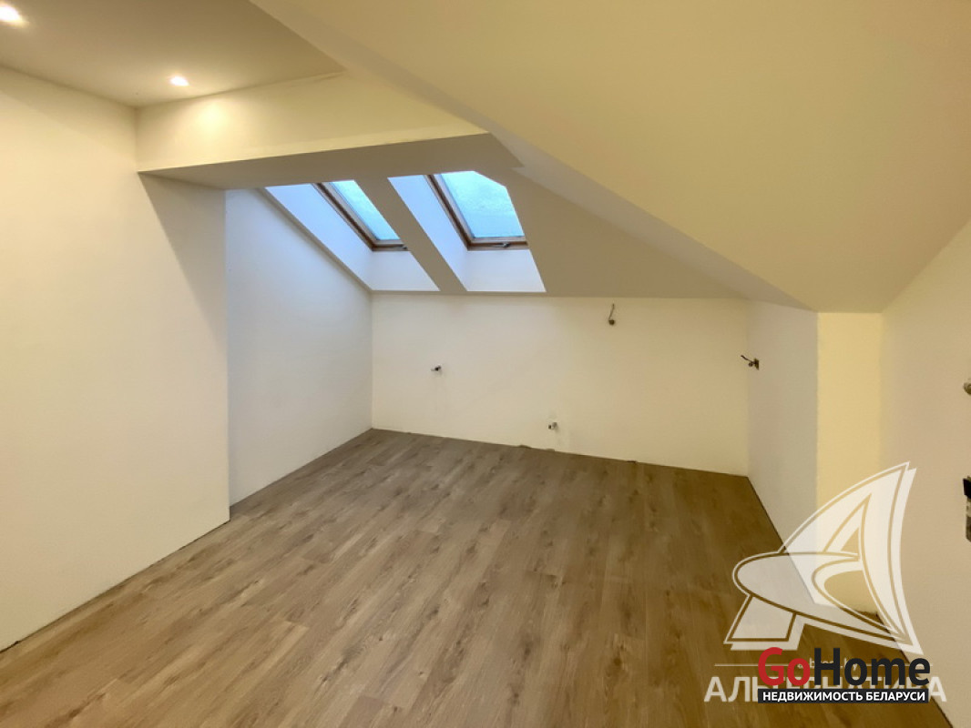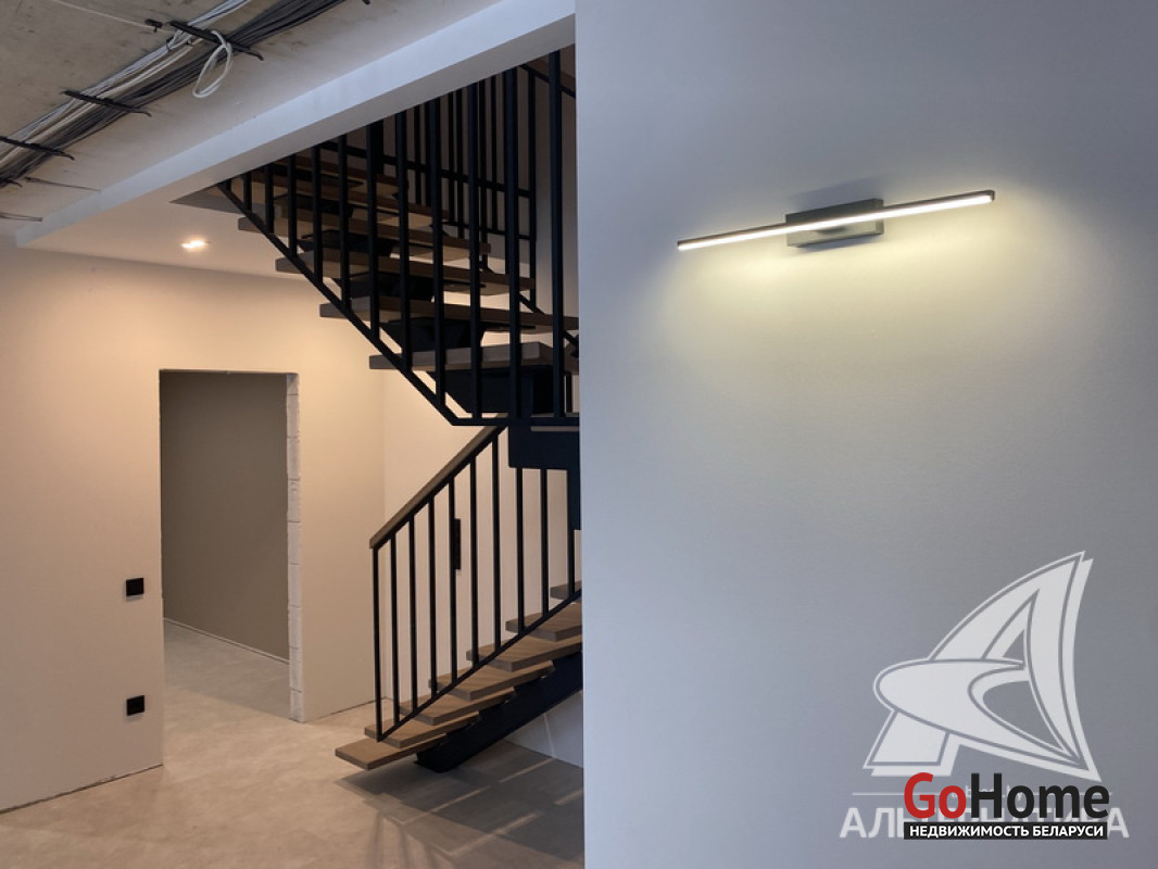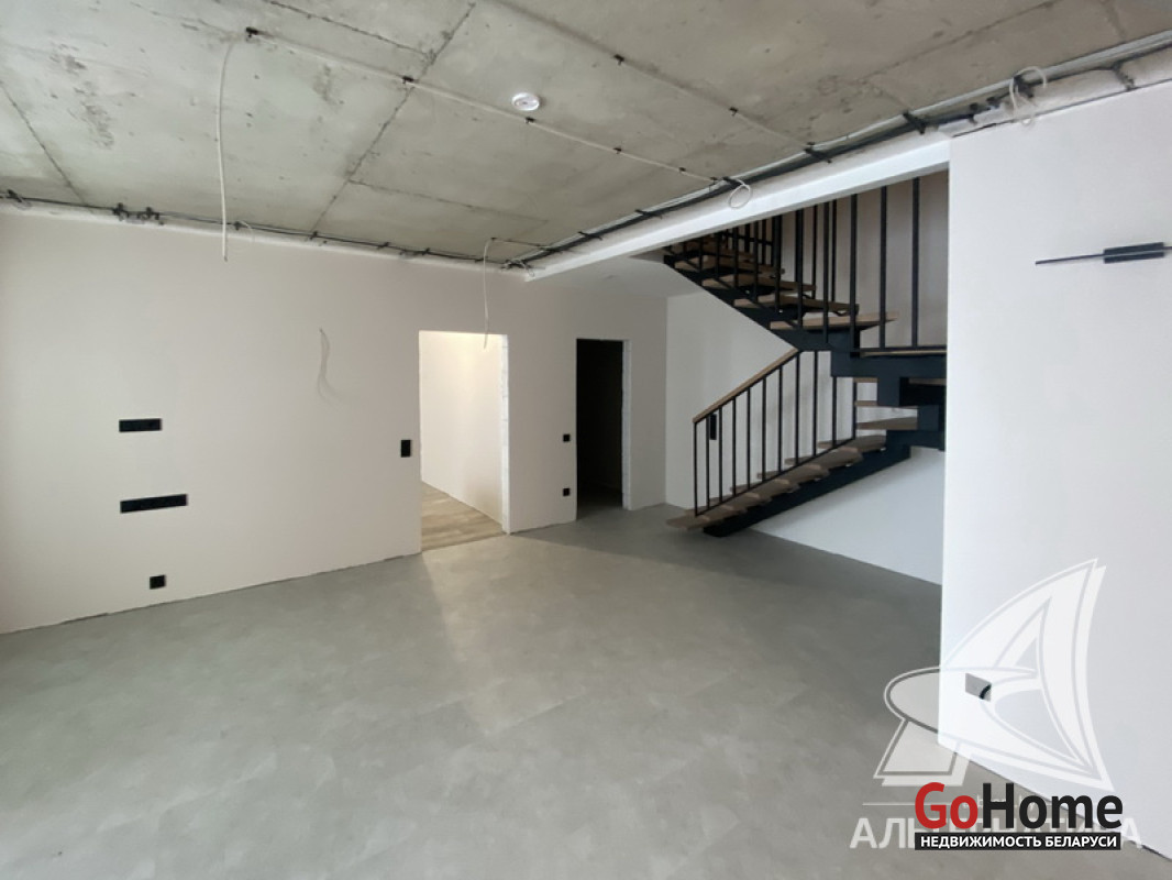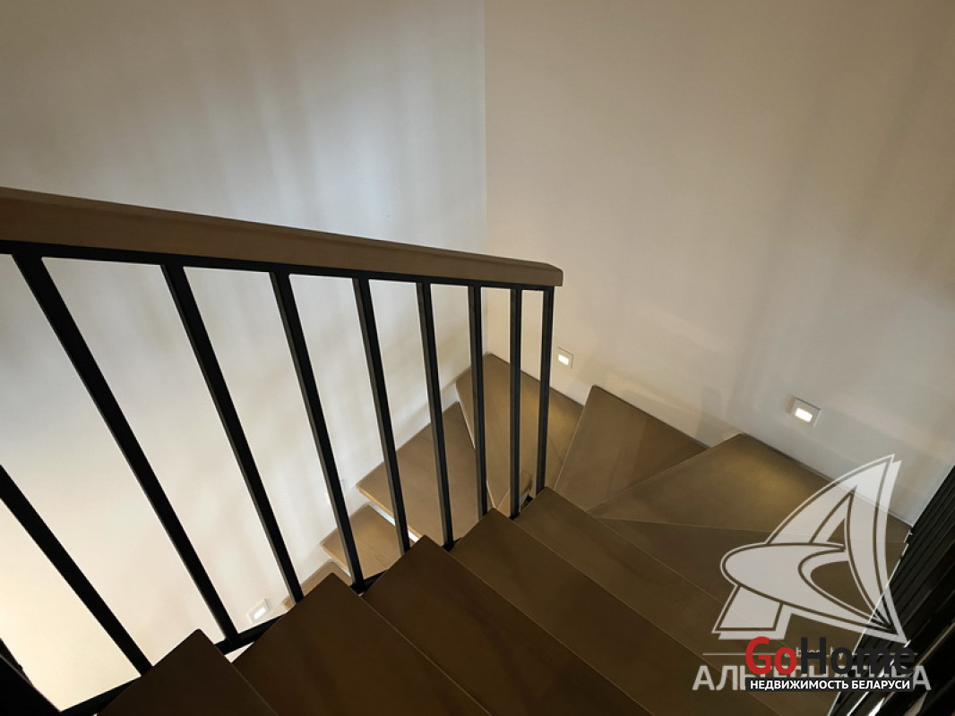 5-комнатная квартира, г. Брест, пр-т Республики, 2022 г.п., 5 + мансарда / 5 + мансарда ж/б каркас + блок, 179,0 / 172,7 / 115,4 / 9,3, два совмещенных санузла, лоджия застеклена, стеклопакеты, окна во французском стиле (на лоджии), входная дверь металлическая, потолки из гипсокартона (частично), полы - кварцвинил (в гостиной, в кухне) и плитка (на лоджии), на стенах декоративная окраска и декоративная отделка штукатуркой (на лоджии), в санузле современная плитка (керамогранит), акриловая ванна, инсталляция Viega (в обоих санузлах), душевая кабина с тропическим душем, автономный газовый котел Arderia, есть выводы на кондиционер, домофон. Кухонный гарнитур (выполнен на заказ, с доводчиками), кухонная техника Maunfeld, кухонный кран Ledeme, электрика Schneider electric, полотенцесушитель GlossReiter. Квартира с индивидуальными дизайнерскими решениями. Качественная разводка электричества, электрический щиток в квартире (с реле напряжения). Лестница изготовлена на заказ, выполнена подсветка лестничного пролета. Множество сценариев освещения. Оборудована постирочная. В квартире никто не проживал. Все окна выходят во двор. Чистый подъезд. На площадке имеется закрытое место для колясок и велосипедов. Двускатная крыша. Безбарьерная среда. Во дворе игровая детская площадка, парковка для автомобилей. Концепция "двор без машин". Есть своя закрытая территория. Лот - 260450
