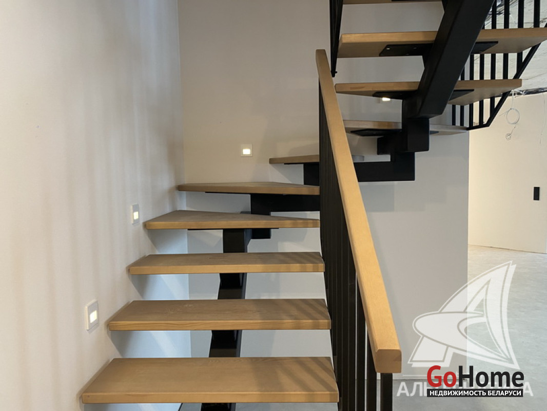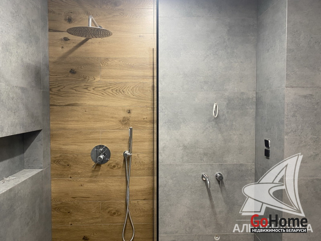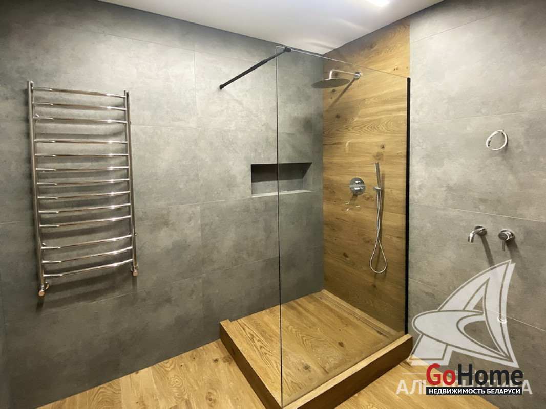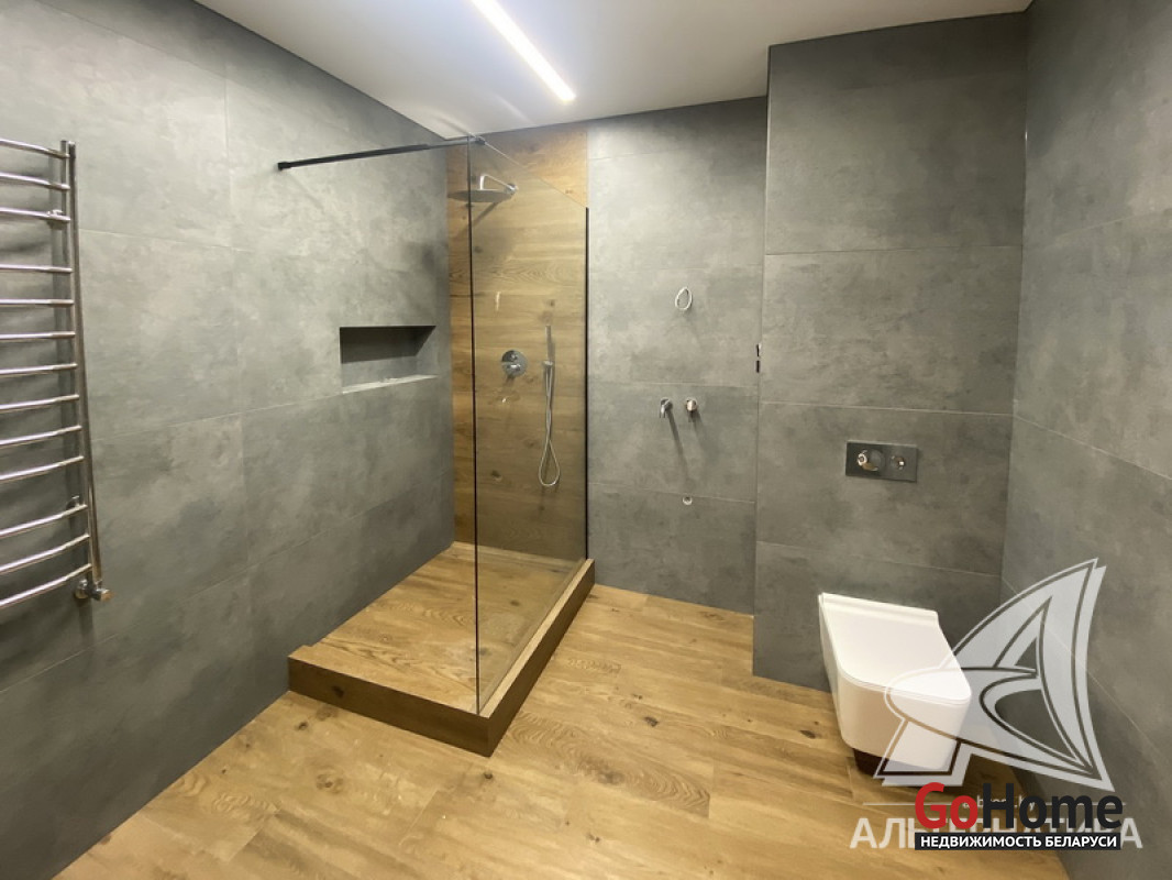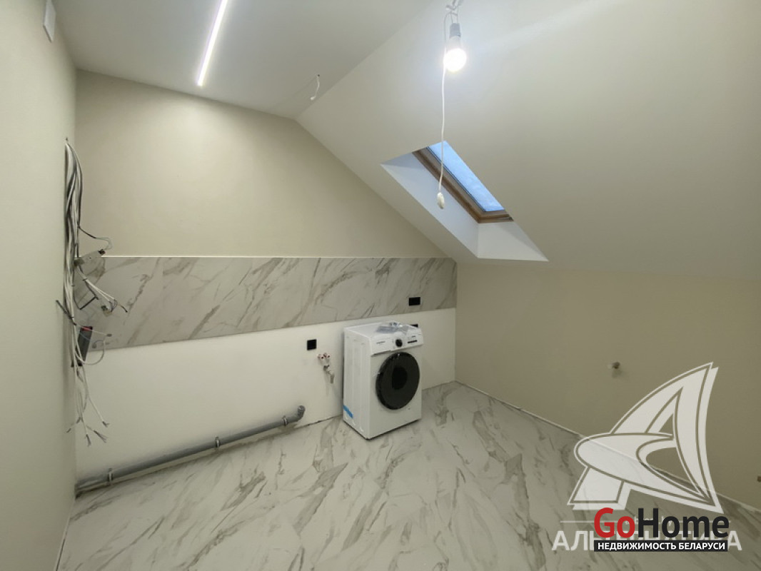 5-комнатная квартира, г. Брест, пр-т Республики, 2022 г.п., 5 + мансарда / 5 + мансарда ж/б каркас + блок, 179,0 / 172,7 / 115,4 / 9,3, два совмещенных санузла, лоджия застеклена, стеклопакеты, окна во французском стиле (на лоджии), входная дверь металлическая, потолки из гипсокартона (частично), полы - кварцвинил (в гостиной, в кухне) и плитка (на лоджии), на стенах декоративная окраска и декоративная отделка штукатуркой (на лоджии), в санузле современная плитка (керамогранит), акриловая ванна, инсталляция Viega (в обоих санузлах), душевая кабина с тропическим душем, автономный газовый котел Arderia, есть выводы на кондиционер, домофон. Кухонный гарнитур (выполнен на заказ, с доводчиками), кухонная техника Maunfeld, кухонный кран Ledeme, электрика Schneider electric, полотенцесушитель GlossReiter. Квартира с индивидуальными дизайнерскими решениями. Качественная разводка электричества, электрический щиток в квартире (с реле напряжения). Лестница изготовлена на заказ, выполнена подсветка лестничного пролета. Множество сценариев освещения. Оборудована постирочная. В квартире никто не проживал. Все окна выходят во двор. Чистый подъезд. На площадке имеется закрытое место для колясок и велосипедов. Двускатная крыша. Безбарьерная среда. Во дворе игровая детская площадка, парковка для автомобилей. Концепция "двор без машин". Есть своя закрытая территория. Лот - 260450