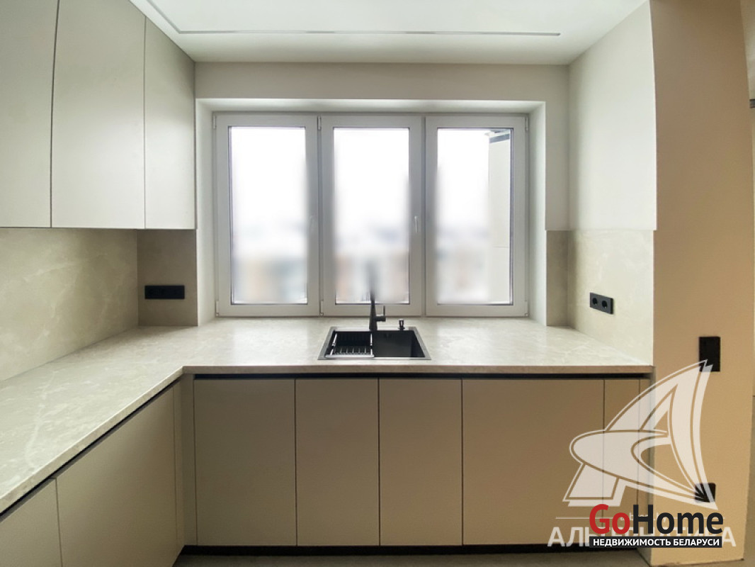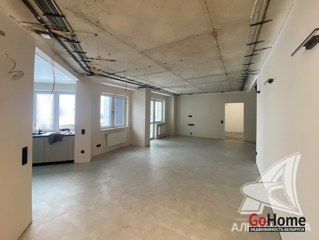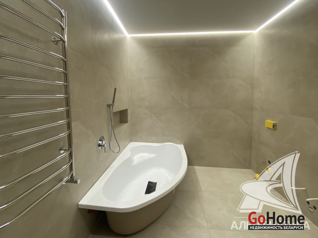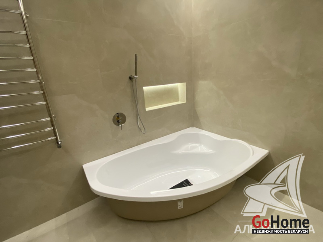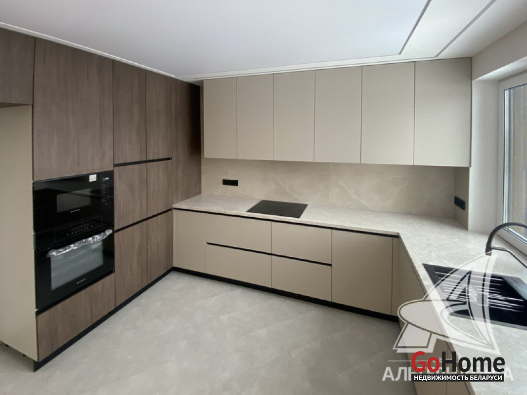 5-комнатная квартира, г. Брест, пр-т Республики, 2022 г.п., 5 + мансарда / 5 + мансарда ж/б каркас + блок, 179,0 / 172,7 / 115,4 / 9,3, два совмещенных санузла, лоджия застеклена, стеклопакеты, окна во французском стиле (на лоджии), входная дверь металлическая, потолки из гипсокартона (частично), полы - кварцвинил (в гостиной, в кухне) и плитка (на лоджии), на стенах декоративная окраска и декоративная отделка штукатуркой (на лоджии), в санузле современная плитка (керамогранит), акриловая ванна, инсталляция Viega (в обоих санузлах), душевая кабина с тропическим душем, автономный газовый котел Arderia, есть выводы на кондиционер, домофон. Кухонный гарнитур (выполнен на заказ, с доводчиками), кухонная техника Maunfeld, кухонный кран Ledeme, электрика Schneider electric, полотенцесушитель GlossReiter. Квартира с индивидуальными дизайнерскими решениями. Качественная разводка электричества, электрический щиток в квартире (с реле напряжения). Лестница изготовлена на заказ, выполнена подсветка лестничного пролета. Множество сценариев освещения. Оборудована постирочная. В квартире никто не проживал. Все окна выходят во двор. Чистый подъезд. На площадке имеется закрытое место для колясок и велосипедов. Двускатная крыша. Безбарьерная среда. Во дворе игровая детская площадка, парковка для автомобилей. Концепция "двор без машин". Есть своя закрытая территория. Лот - 260450