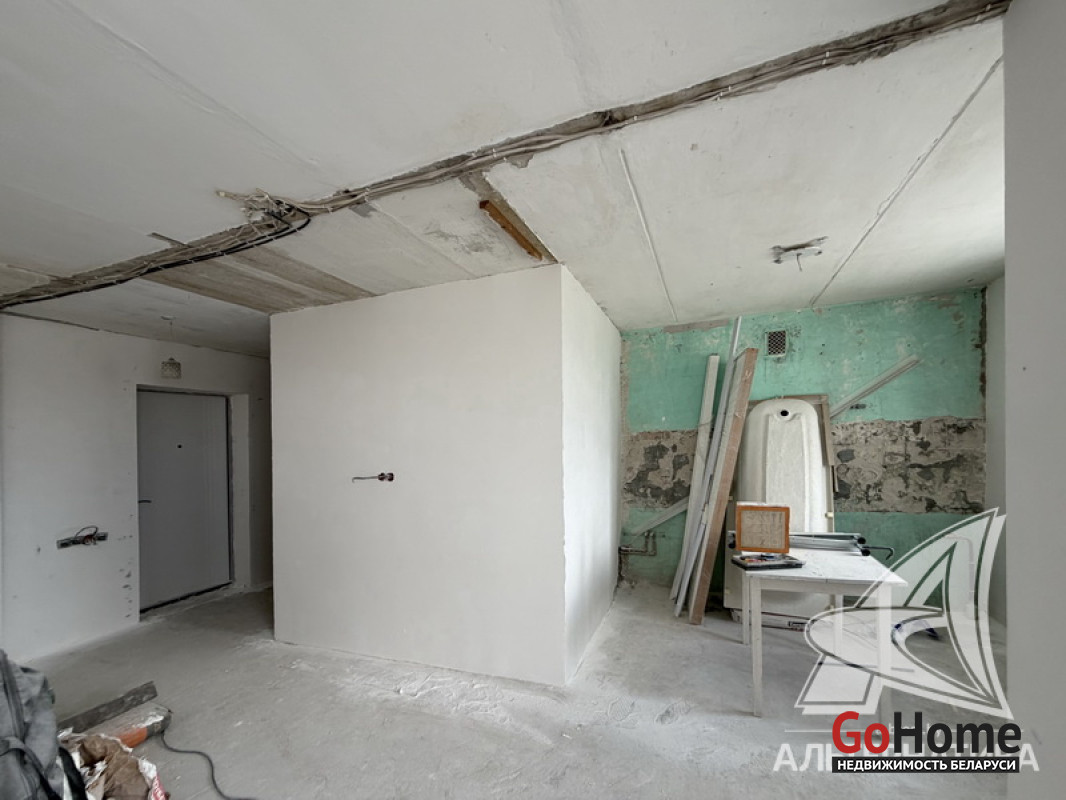 1-комнатная квартира, г. Брест, ул. Кирова, 1983 г.п., 9 / 9 кирпич, 33,3 / 31,7 / 15,2 / 7,29, санузел совмещенный, балкон застеклен, стеклопакеты, входная дверь металлическая, полы - стяжка, домофон. Квартира на этапе ремонтно-отделочных работ. Один пассажирский лифт. Лот - 260444