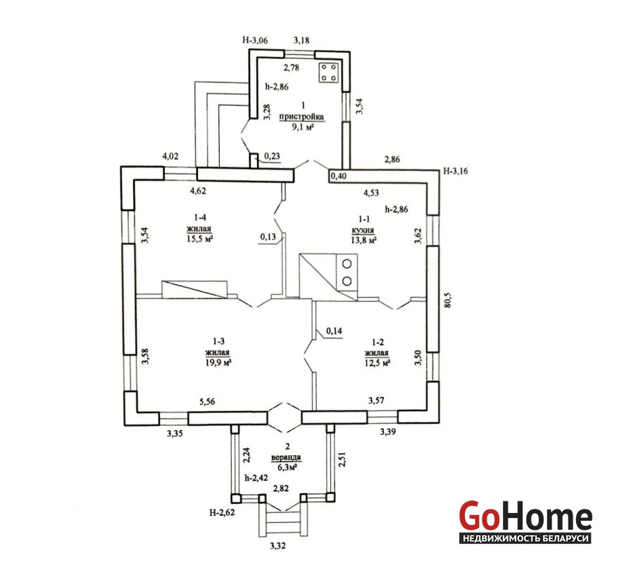 + большая кухня с выходом на пристройку. Высокие потолки.