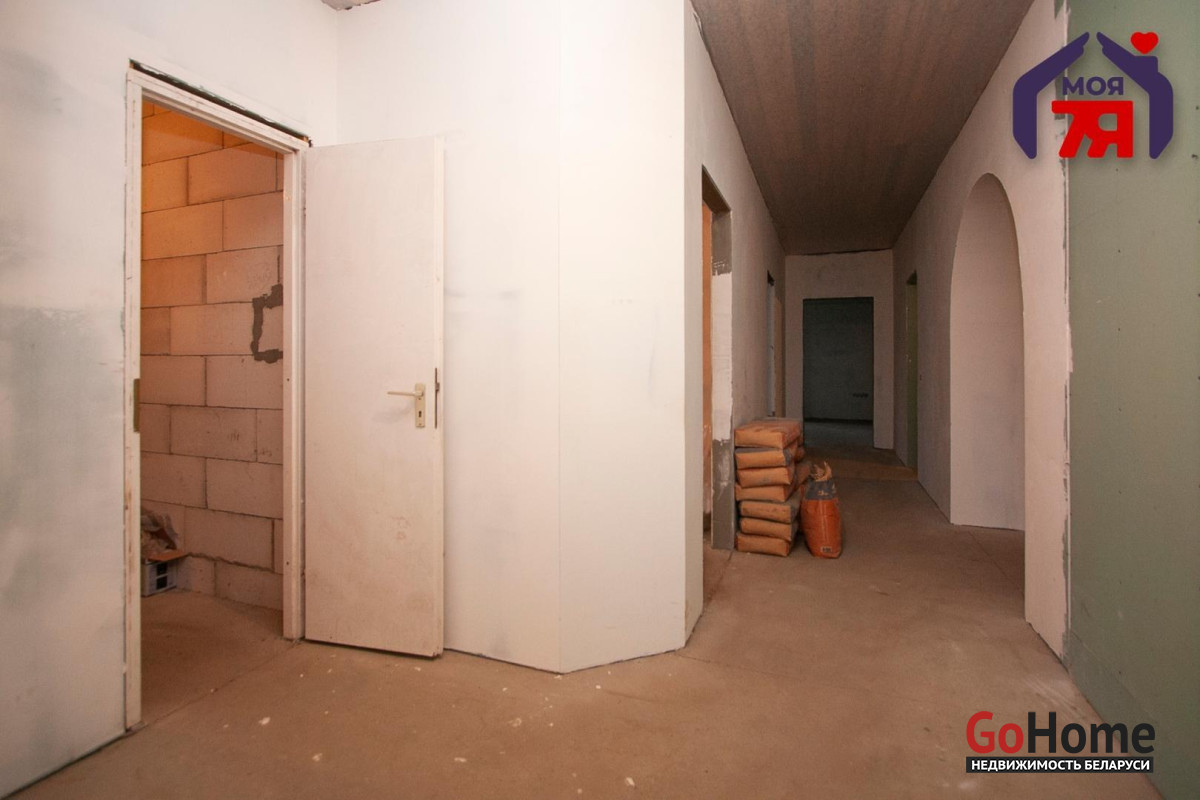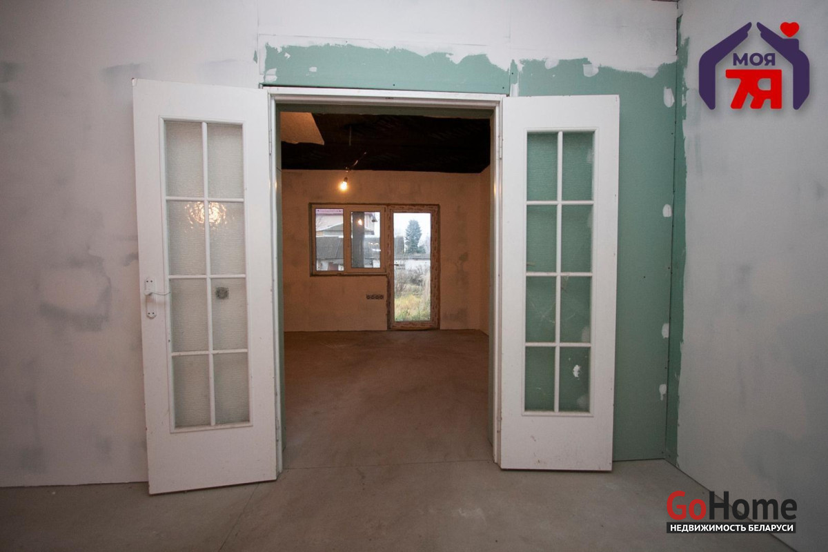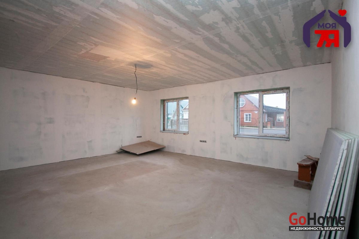 - Силикатно-блочный одноуровневый дом общей площадью 120,4 кв.м, из которых 79 кв.м - жилая площадь, а кухня занимает 15,3 кв.м. Дом 2025 года постройки готов на 90%. Это отличное решение для комфортного проживания в просторном и функциональном доме.- В доме предусмотрены центральное отопление, водоснабжение и канализация, а также электричество и газ - все для вашего комфорта и удобства. Кровля выполнена из металлочерепицы, что обеспечивает надежность и долговечность.- Отопление осуществляется девятью контурами теплого пола от турбированного котла Protherm, что позволяет индивидуально регулировать климат в каждой комнате. Блочная часть дома утеплена пеноплексом, деревянная часть дома утеплена по внутренней стороне эковатой 10-12 см и зашита гипсокартоном, что позволяет сохранять тепло и деньги в зимнее время, а в летний период комфортную прохладу в доме. Нагрев воды осуществляется с косвенным нагревом воды на 300 л., что избавит вас от перепадов температуры и создаст кофморт при утренних водных процедурах.- Фасад дома обшит металлическим профилем под блокхаус толщиной металла 0,5 мм., что создает вид деревянного дома и избавит Вас от ежегодных ритуалов по обработке дома защитными пропитками.- Дом расположен на участке площадью 12 соток, что предоставляет простор для создания садов, огородов и зон для отдыха.- Все строительные материалы остаются новому хозяину (комплект выключателей и розеток, смеси и прочие материалы), а так же есть возможность спланировать участок и установить забор из металлопрофиля, либо из металлического штакетника в любой цвет на выбор покупателя.- Дом находится всего в 53 км от МКАД, в Брестском направлении, что обеспечивает удобный доступ к Минску. Улица Карла Маркса отличается развитой инфраструктурой: в шаговой доступности - детский сад, школы, лыжероллерная трасса и зеленая лесопарковая зона для прогулок.- Городское сообщение с Минском обеспечивается регулярными маршрутными такси. Также рядом с домом расположен автовокзал, что делает поездки в столицу удобными и быстрыми. Это отличный выбор для тех, кто ищет сочетание уединения и удобства городской жизни.