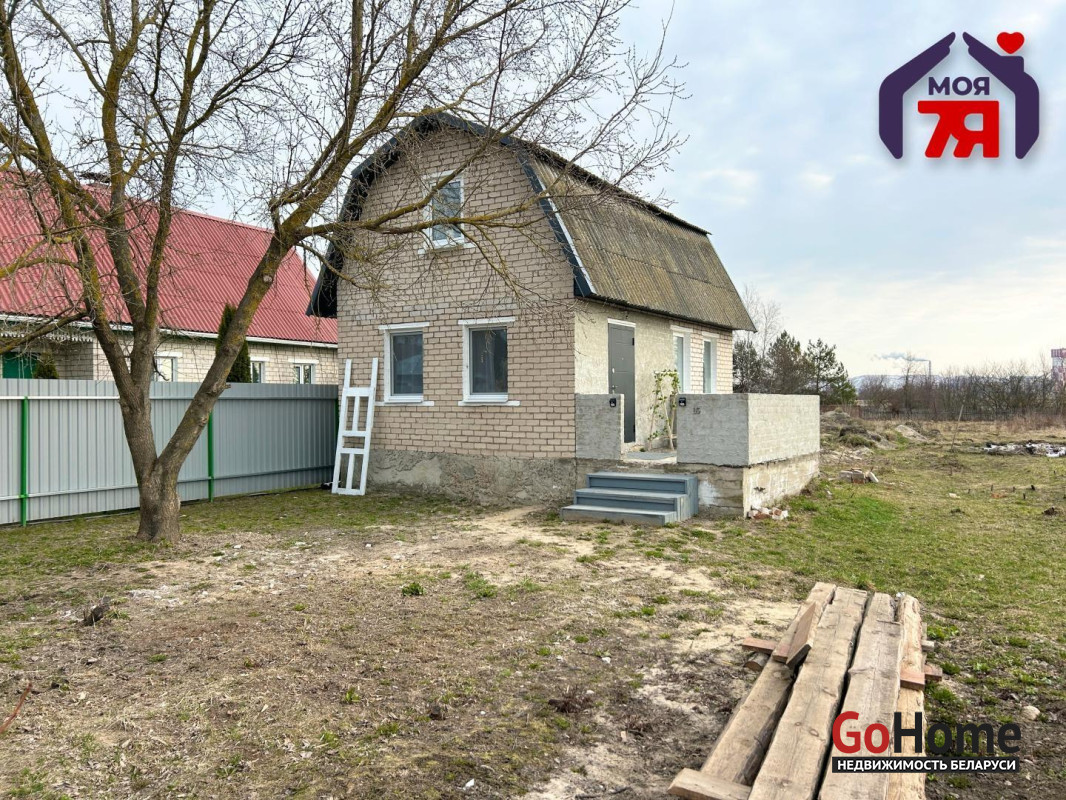 - Кирпичный садовый домик 2002 года постройки, проходящий качественную реконструкцию. Общая площадь 34,1 м2, жилая — 31 м2. Двухэтажный дом включает 1 комнату на втором этаже (просторная жилая зона 34 м2 с новыми окнами ПВХ и обшивкой гипсокартоном) и первый этаж с кухней-гостиной и совмещённым санузлом. Выполнена стяжка пола, на первом этаже уложена плитка и линолеум, в санузле — плитка.