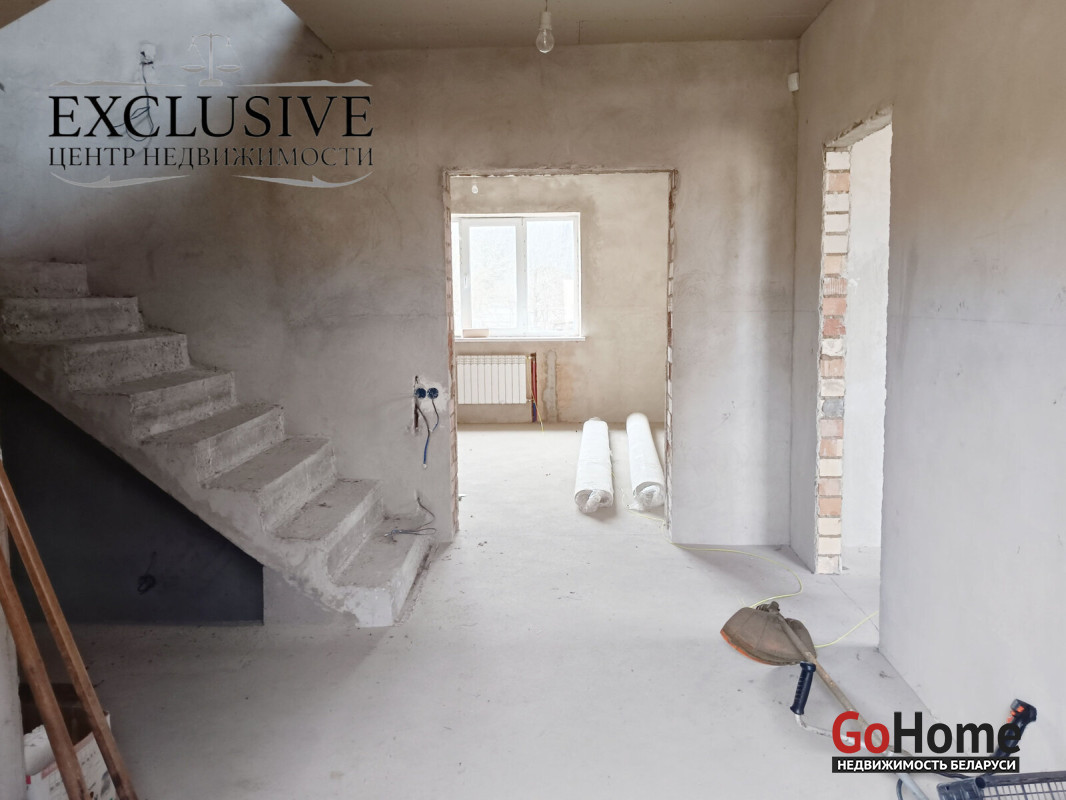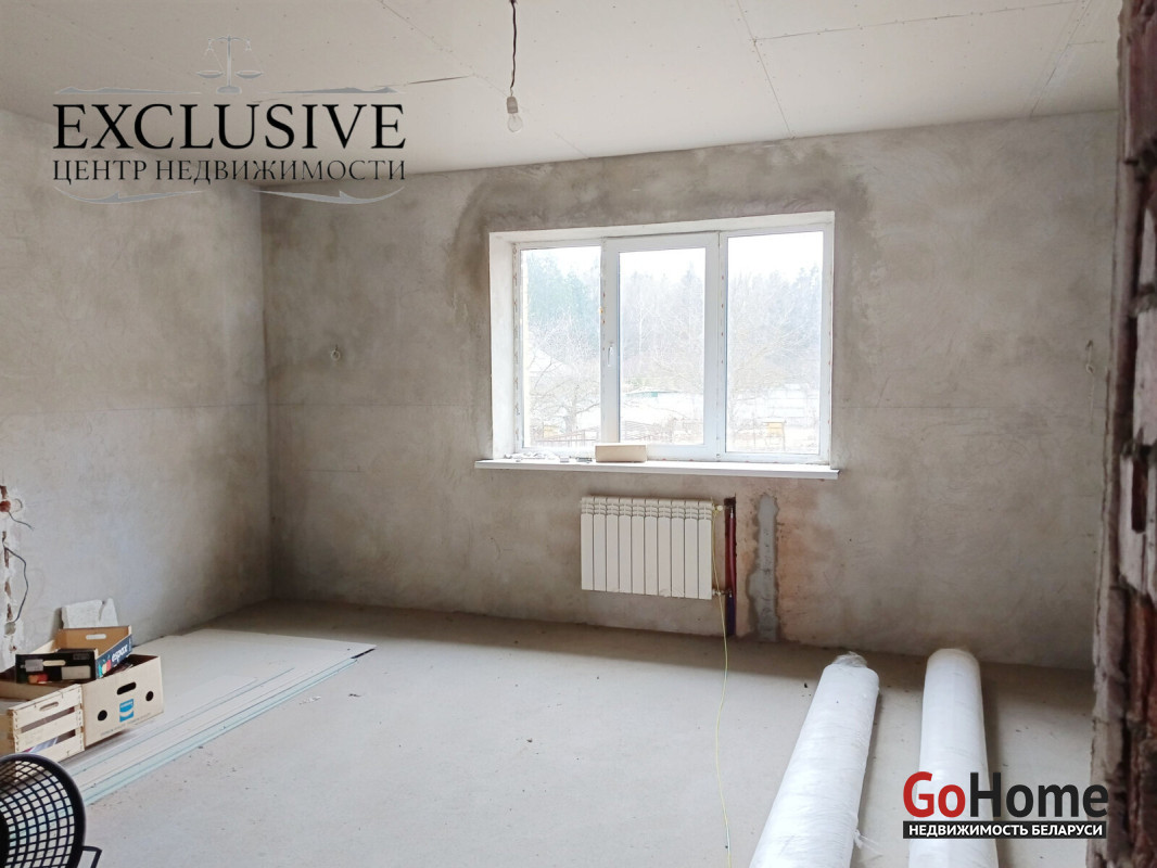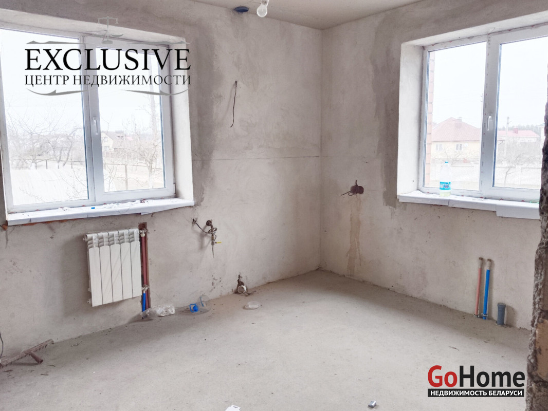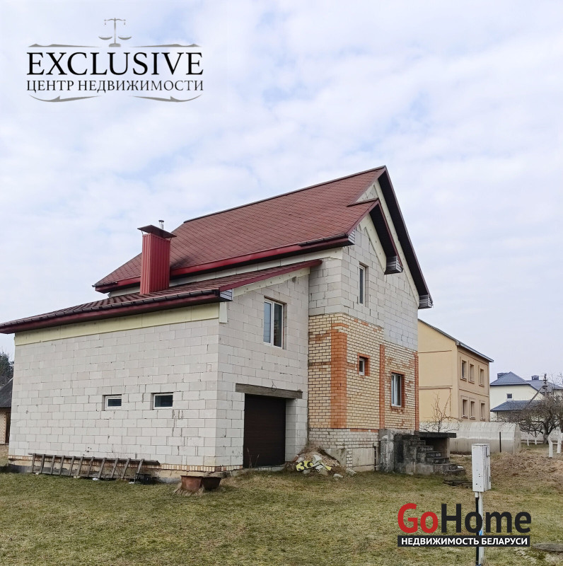 Дом построен из ГСБ-40см и кирпича. Крыша- битумная черепица. Перекрытия железобетонные. Стены оштукатурены. Полы- бетонная стяжка. Установлены окна ПВХ.