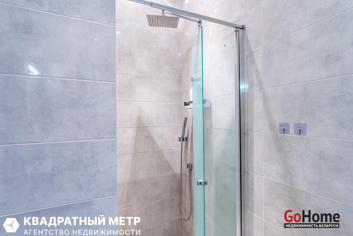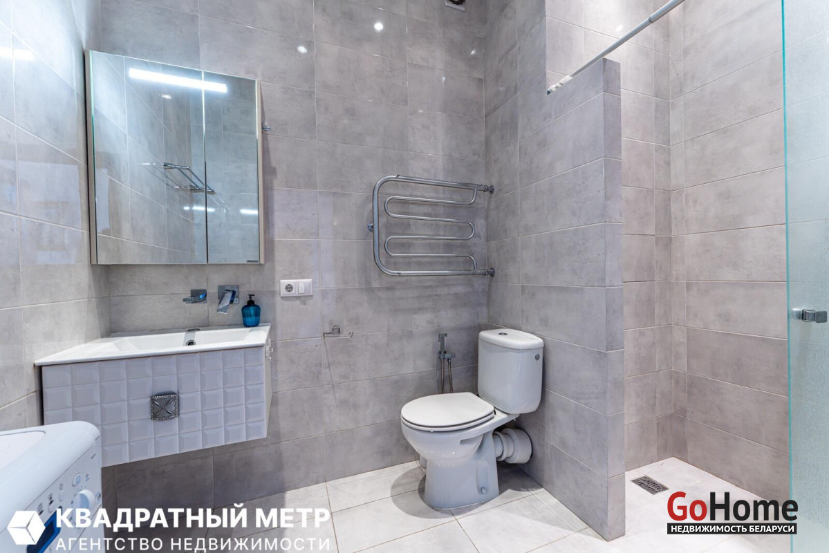 Совмещенный санузел: Облицован импортной плиткой, установлена душевая кабина и стиральная машина. Качественные смесители.