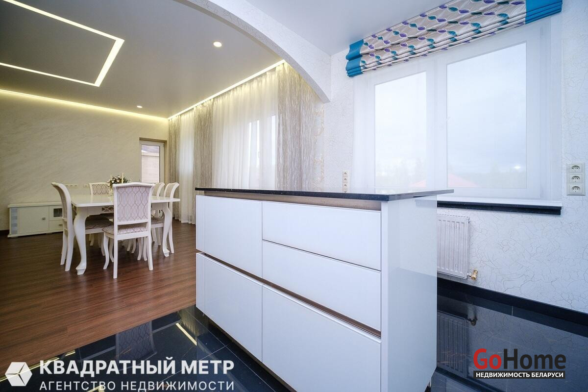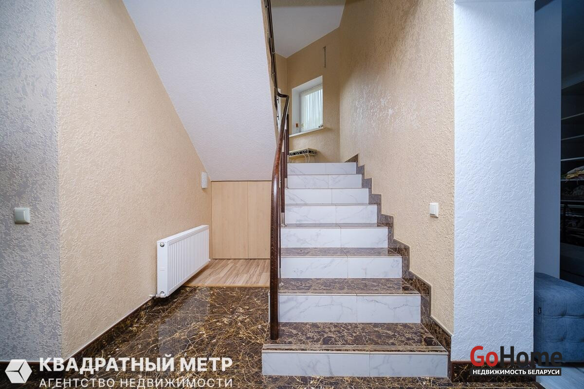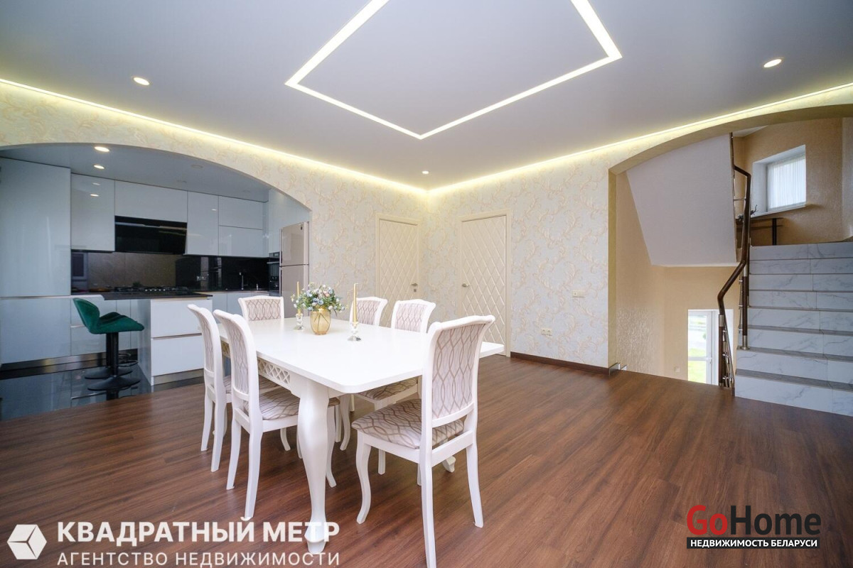 Таунхаус - этот тип жилья, сочетающий удобства квартиры и коттеджа."Заславские горки"- комплекс, который находится в 15 км от Минска,на окраине Заславля . Территория закрыта под шлагбаум,обнесена забором,по периметру и возле каждого коттеджа видеонаблюдение.Коттедж с встроенным гаражом и своим участком 4 сотки.Все коммуникации: центральная канализация, газовое отопление,электричество, интернет.Дом 2013г.п.,270м2.,газосиликатные блоки, утеплены, оштукатурены. Полы : плитка с подогревом ( теплый пол)+ ламинат. Крыша: металлочерепица.Перекрытия ж/б., высота потолков 2,75.В доме три уровня:1- большая комната отдыха, хамамм с душем, санузел, гардероб. Бытовое помещение с отопительной системой.К 1-му уровню примыкает гараж (3х6.5)с подъёмными роллетами.2-уровень : кухня - столовая (35м2), две большие спальни, санузел, и большая терраса ( выход из столовой).3-уровень - это " детский мир" , три спальни с встроенной мебелью, кровати, столы , есть свой санузел + гардероб. Отделка дома - обои + венецианская штукатурка. На кухне встроенная техника ( импортная), все ,что необходимо современной хозяйке.Территория участка - ландшафтный дизайн, цветы+ газон, декоративные деревья, кусты голубики, фруктовые деревья. Дренаж для полива , освещение. Но самая большая достопримечательность это огромная беседка- навес с камином, место, где Вы можете получать великолепный релакс с вашей семьей .Добираться на " Заславские горки" очень просто, штадлер" Городские линии" 15 минут от центра Минска с ж.д.вокзала, станция Зелёное и 7 минут до коттеджа. Мы ждём Вас на просмотры и будем рады видеть Вас нашими покупателями!!!