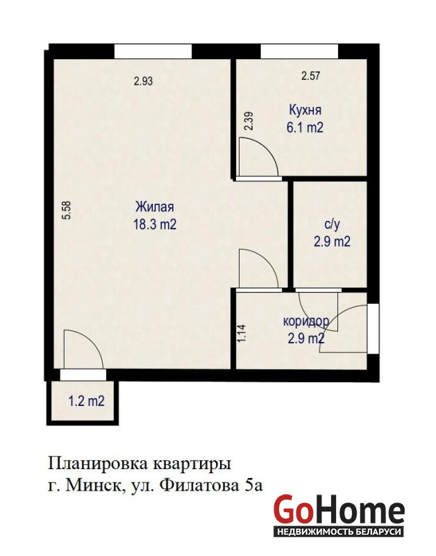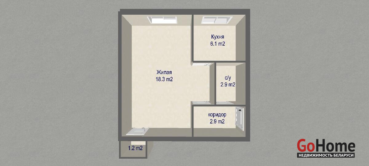 Площадь квартиры общ. 31.4/жил. 19.5/кух. 6.1