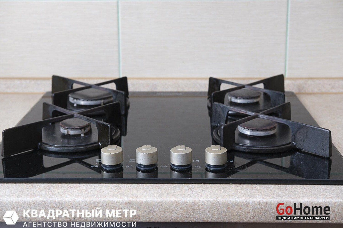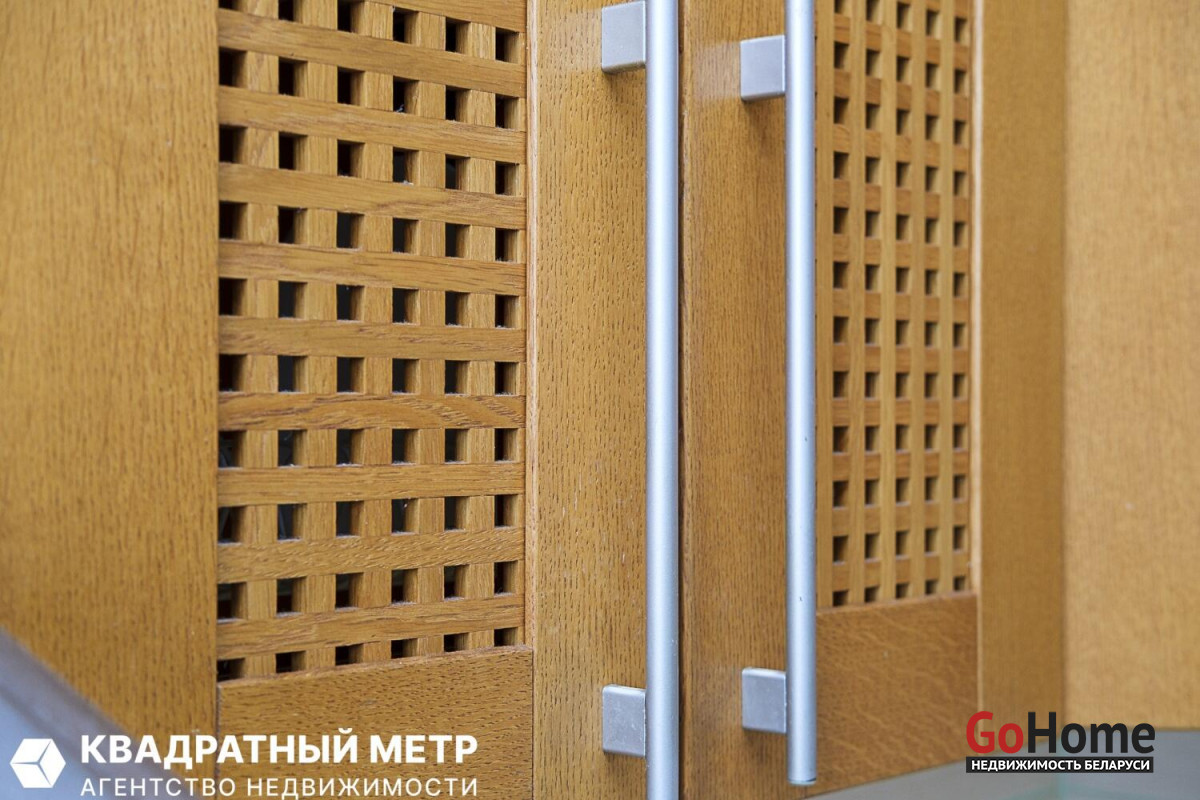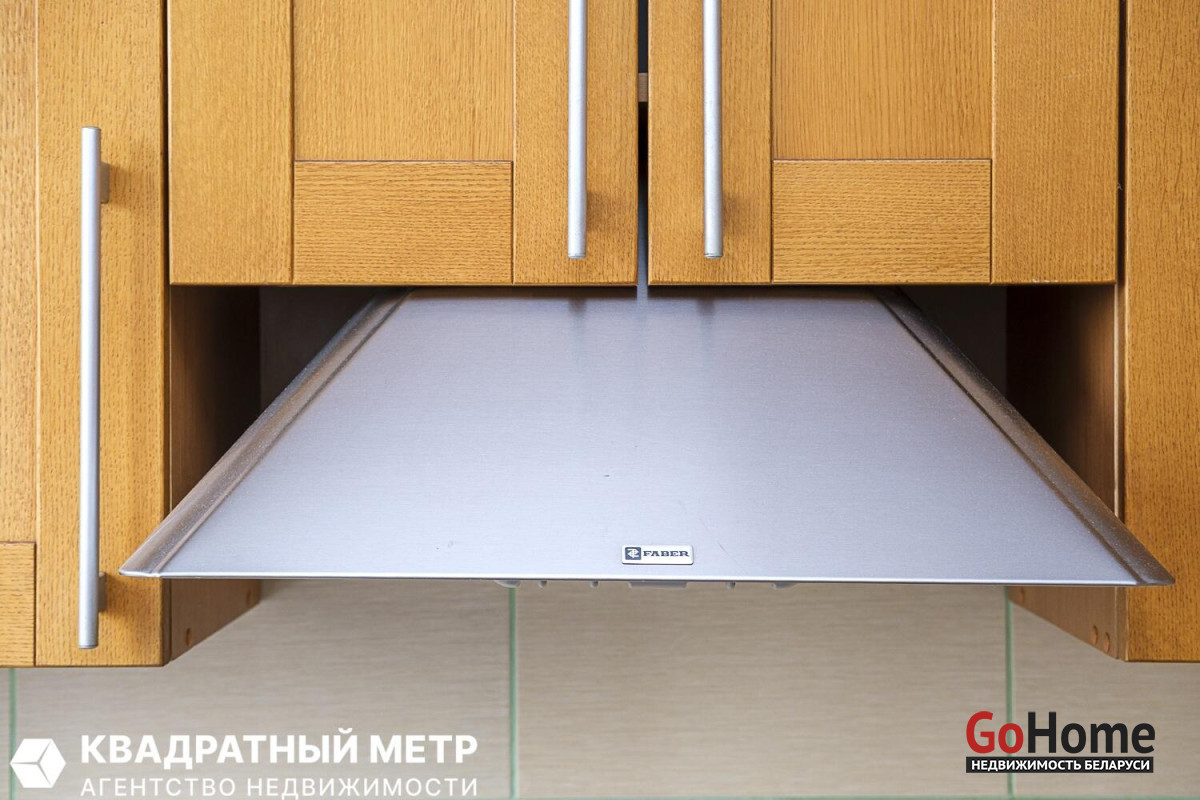 Кухня оборудована всей необходимой техникой: газовая варочная поверхность, духовой шкаф, вытяжка, холодильник. Кухонный гарнитур фирмы «Yavid» из массива дуба.