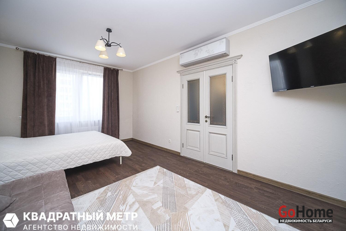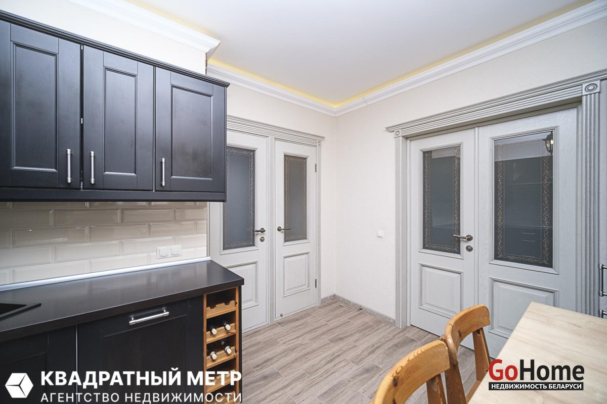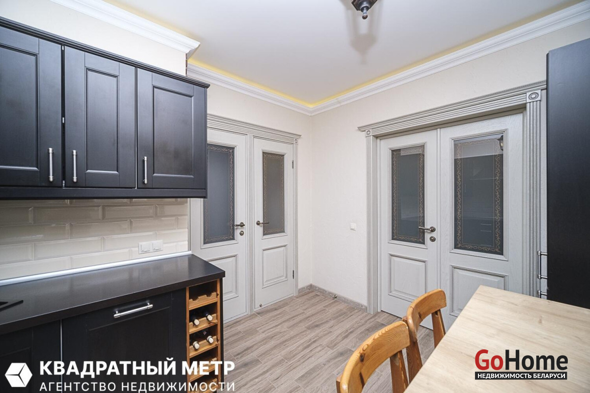 В квартире выполнен качественный ремонт из натуральных материалов: напольное покрытие – паркет из массива ясеня, в кухне керамогранитная плитка (пол с электро-подогревом), на стенах декоративная штукатурка клинкерный кирпич, потолки окрашены, двери из массива на магнитных замках, окна ПВХ, кондиционер (сплит-система) входная дверь металлическая.