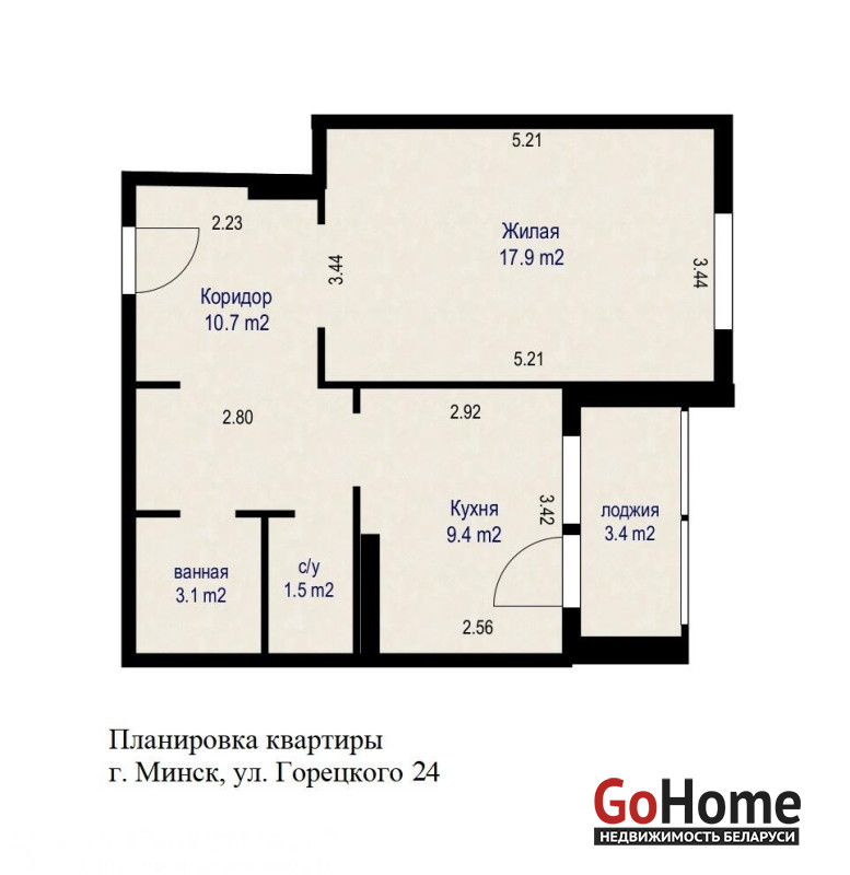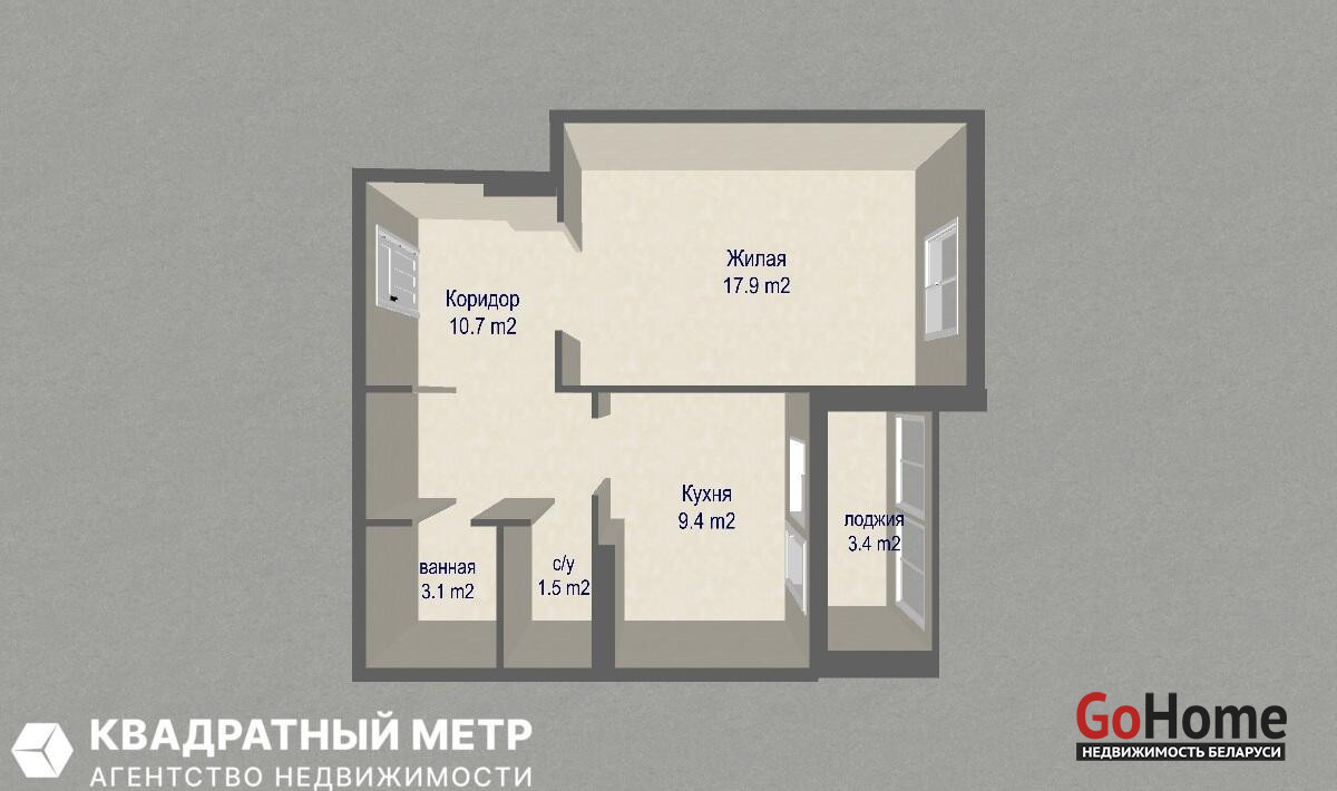 Площадь СНБ 45.00/общ. 42.6/жил. 17.90/кух. 9.40
