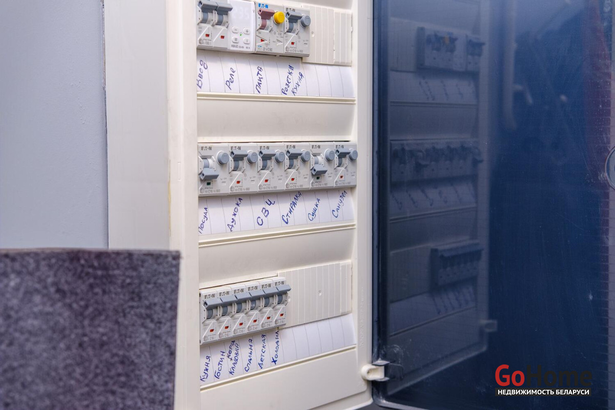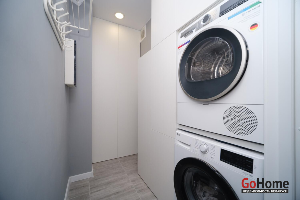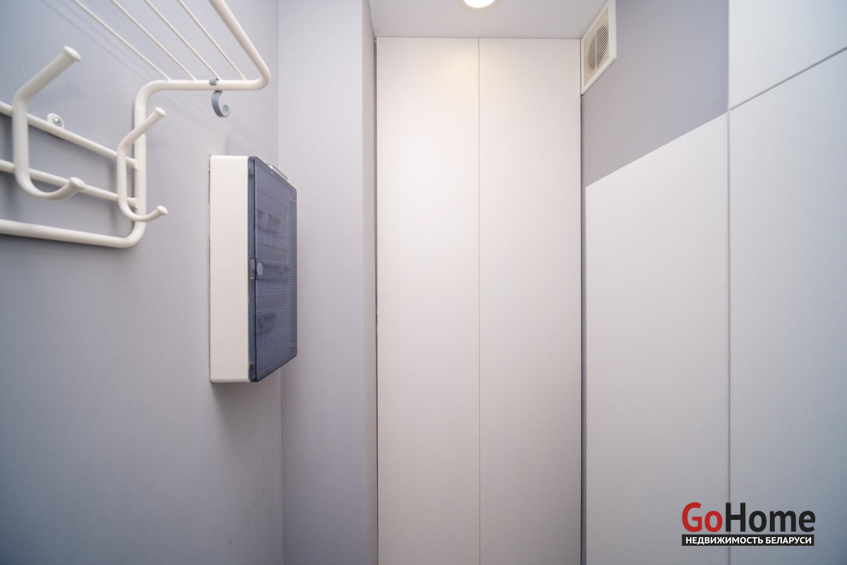 В коридоре большой встроенный распашной шкаф, установлена надежная металлическая входная дверь премиум качества. Здесь же расположена кладовая-постирочная комната с встроенными шкафами, стиральной машиной LG и сушильной машиной BOSCH, а также сердце электрики квартиры - автоматика входной группы: каждый автомат на каждую комнату и на все электробытовые приборы.