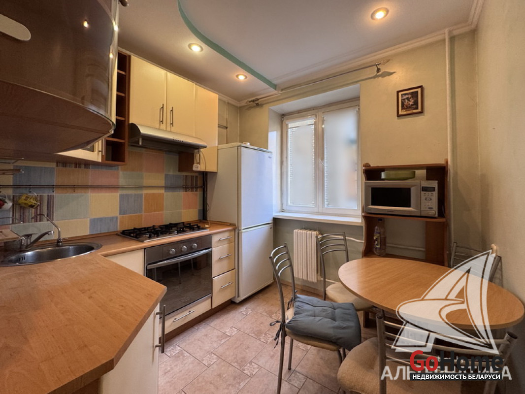2-комнатная квартира, г. Брест, пр-т Машерова, 1960 г.п., 3 / 5 кирпич, 43,5 / 42,6 / 27,5 / 6,1, санузел совмещенный, балкон, подвал, деревянные стеклопакеты, межкомнатные двери - массив, входная дверь металлическая, многоуровневые потолки из гипсокартона (2,5 м), полы - доска под лак и плитка (положены на стяжку), на стенах декоративная окраска и обои, в санузле современная плитка, акриловая ванна, проведена новая электропроводка, установлены новые радиаторы, телефон, домофон. Кухонный гарнитур. Остальная мебель и техника по договоренности. Квартира с хорошим ремонтом. Чистый подъезд. Во дворе игровая детская площадка, парковка для автомобилей. Капитальный ремонт дома 2014 г. Заменены внутридомовые коммуникации (вода, канализация, отопление). Лот - 260453