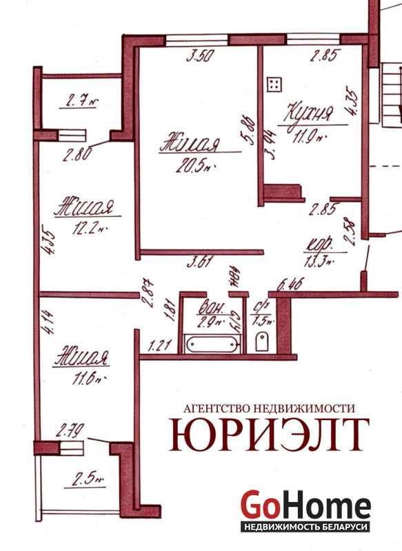 Общая площадь – 73,9 кв. м., жилая – 44,3 кв. м., кухня – 11,9 кв. м. Высота потолка 2.65 м.