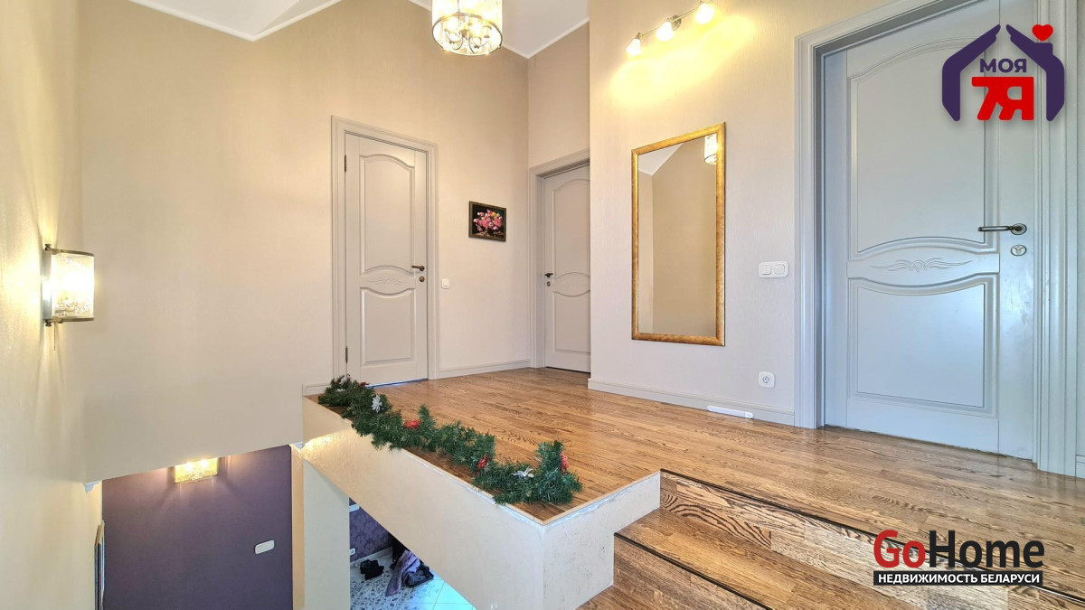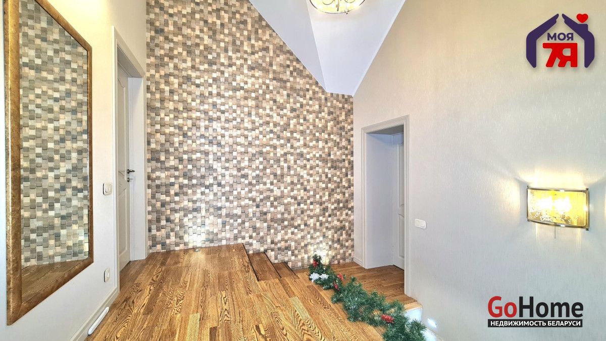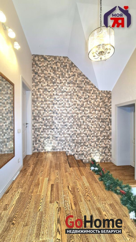 - Потолки 2 этажа — двойной гипсокартон, в санузлах — натяжные. Полы — паркетная доска Tarkett (дуб, брашировка, 7 слоёв лака) на подложке. В комнатах текстильные импортные обои.