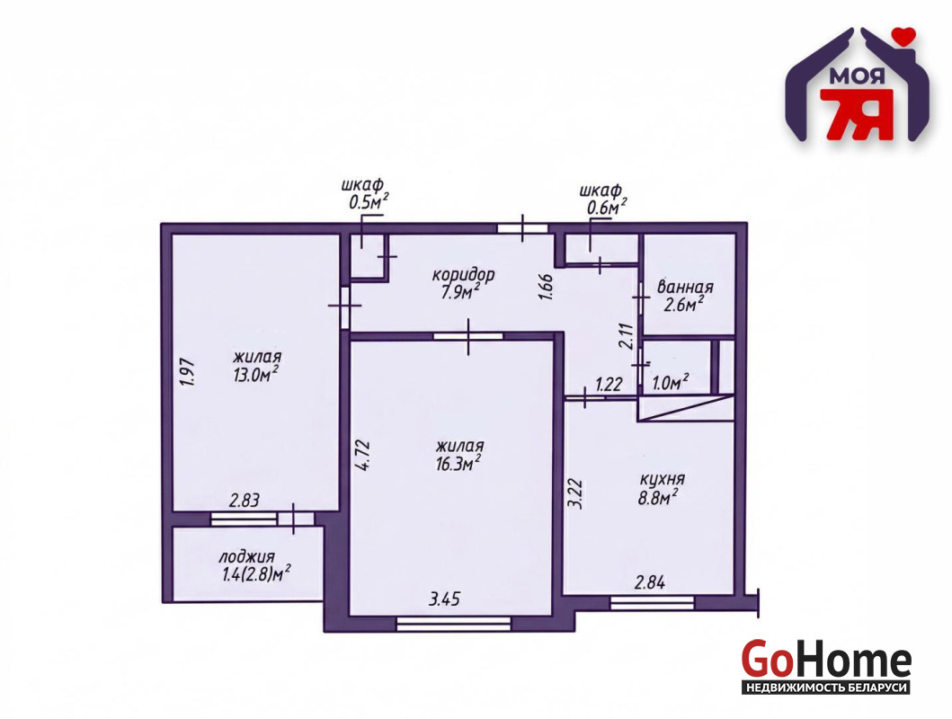 -Площадь квартиры 52,1 м2 (жилая 29,3 м2), планировка работает на удобство: две непроходные комнаты, а значит у каждого будет свое личное пространство.