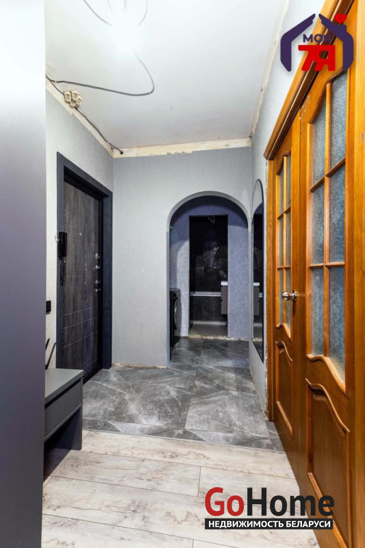 -По отделке: основной ремонт уже сделан: новая кухня установлена, плитка и ламинат уложены, стены готовы. Ремонт немного недоделан — это означает, что вы можете жить сразу и доделывать детали под себя, без спешки, без резких затрат. В санузле и на полу уложена плитка Laparet. А таже установлены самопромывные фильтры тонкой очистки и регуляторы давления воды. Новая электрика с электрощитком. На входе стоит входная дверь металюкс.