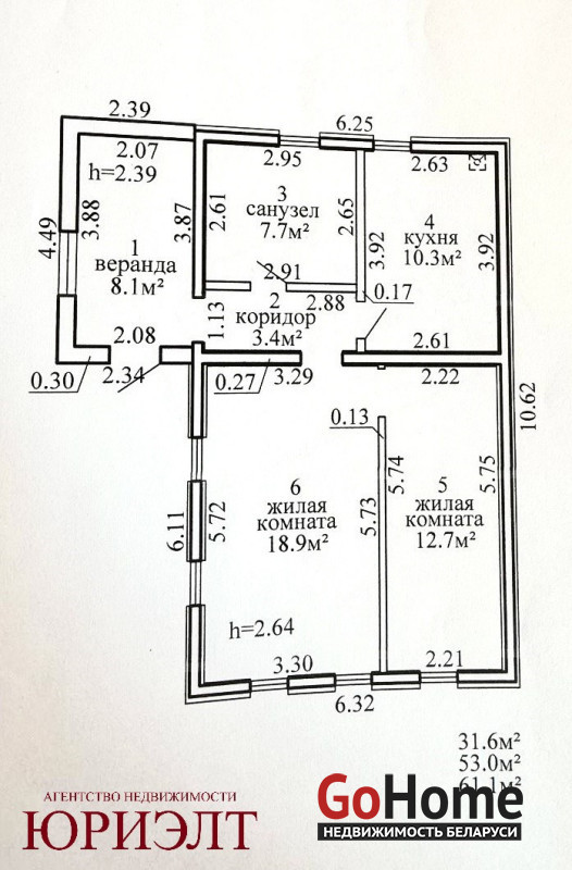 Общая площадь 61.1 м