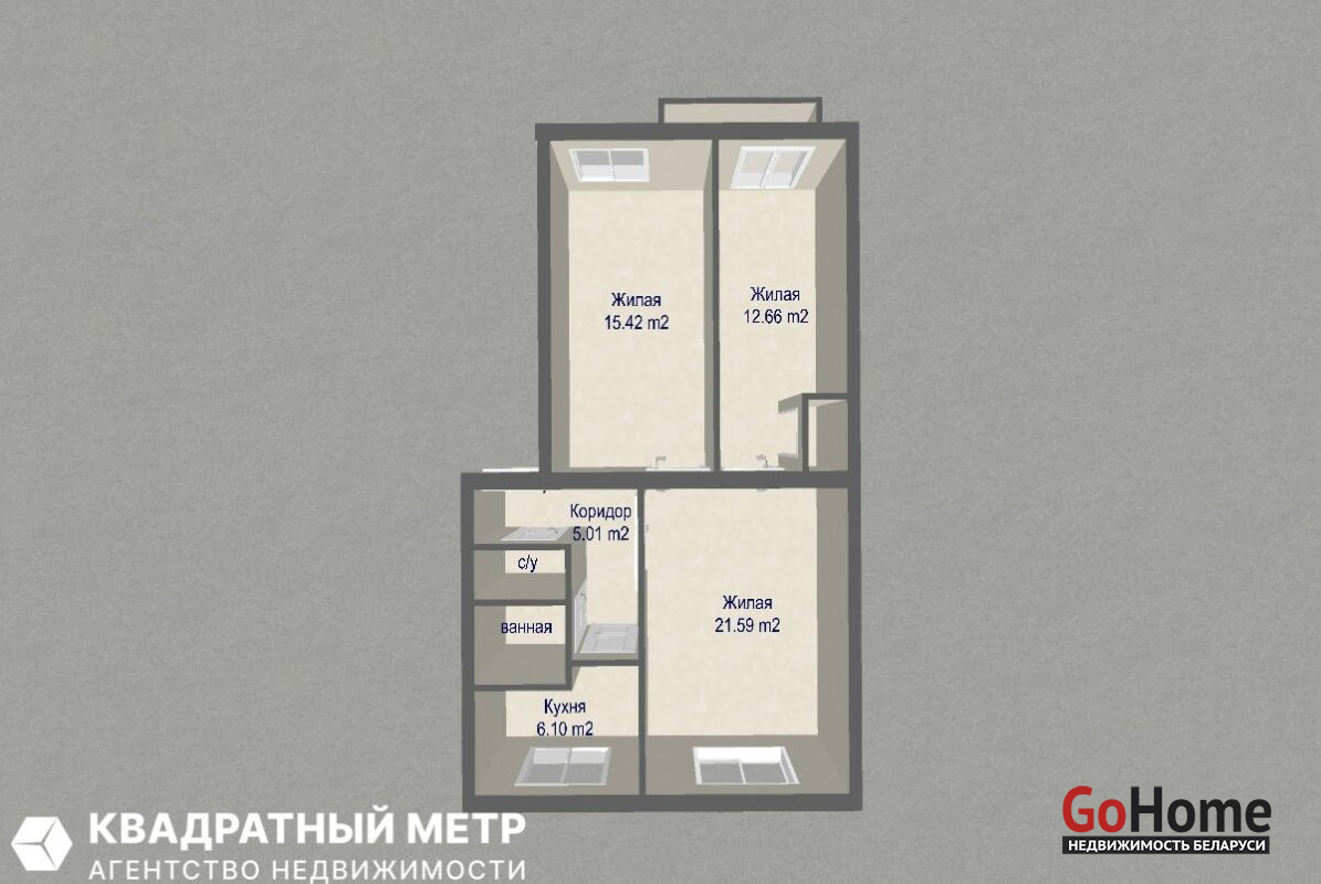 Свет и простор: Продуманная планировка с окнами на две стороны и качественными стеклопакетами.