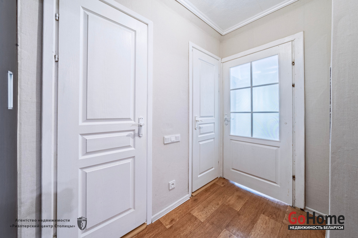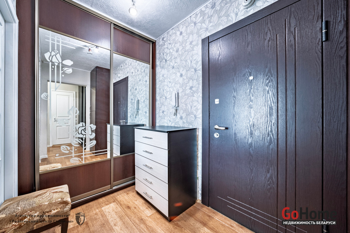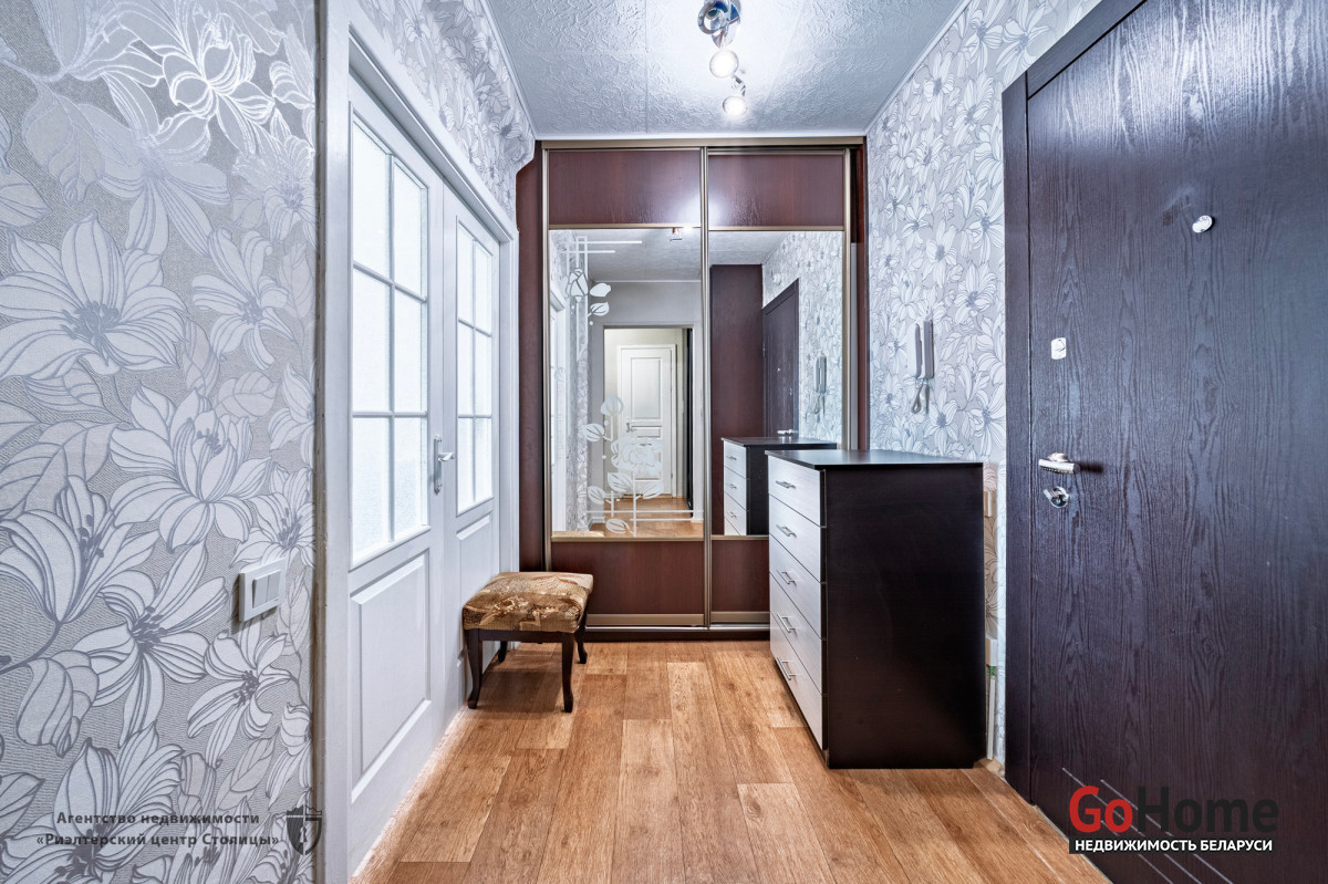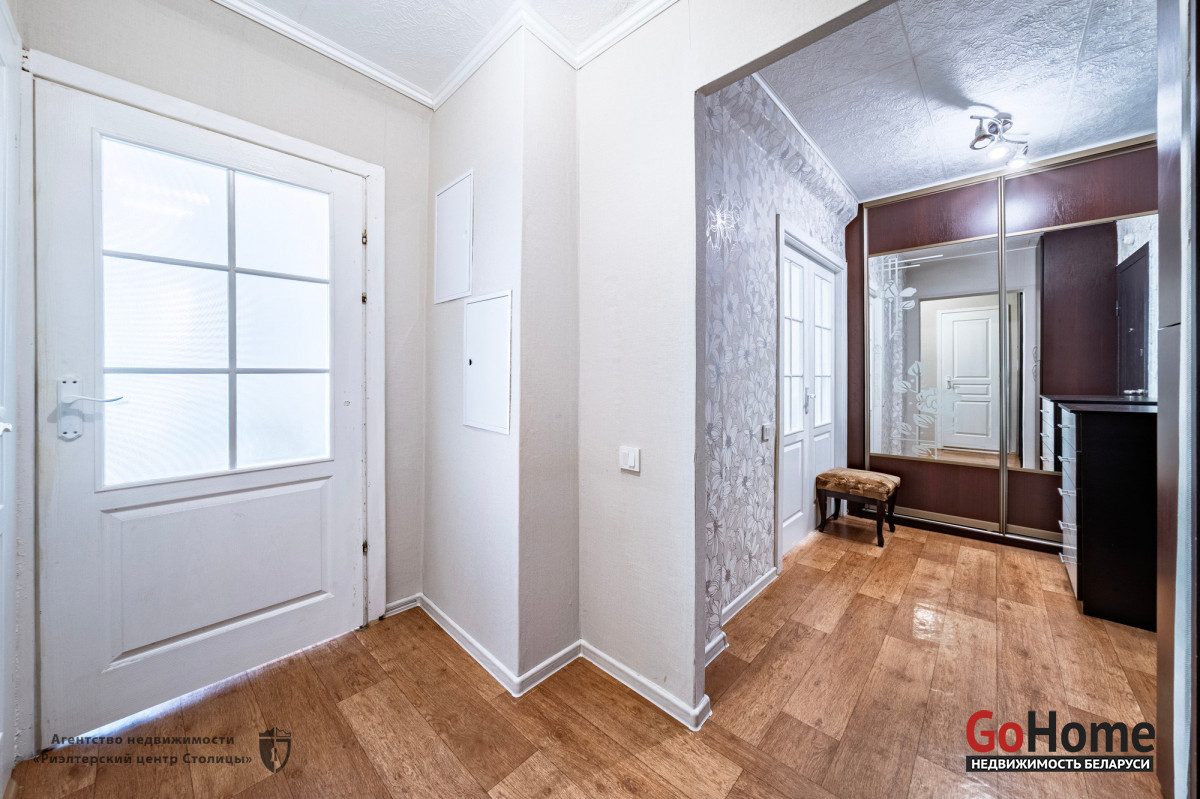 В прихожей установлены два вместительных шкафа купе. Входная дверь металлическая.