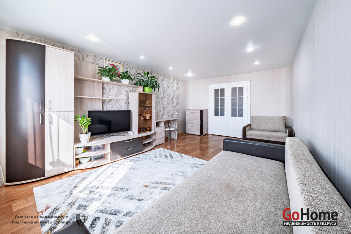 Сама квартира очень светлая, тёплая и уютная. Продается с мебелью (кроме телевизора и одного дивана). Потолки во всей квартире натяжные.