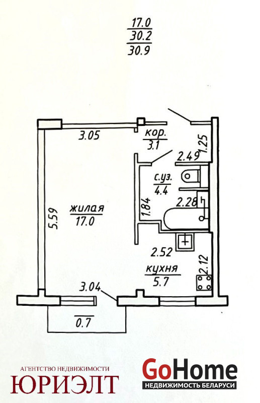Общая площадь 30.9 м