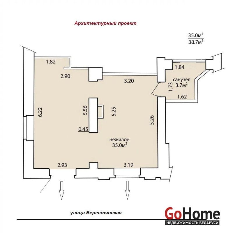 Площадь: 38,7 м² по СНБ.