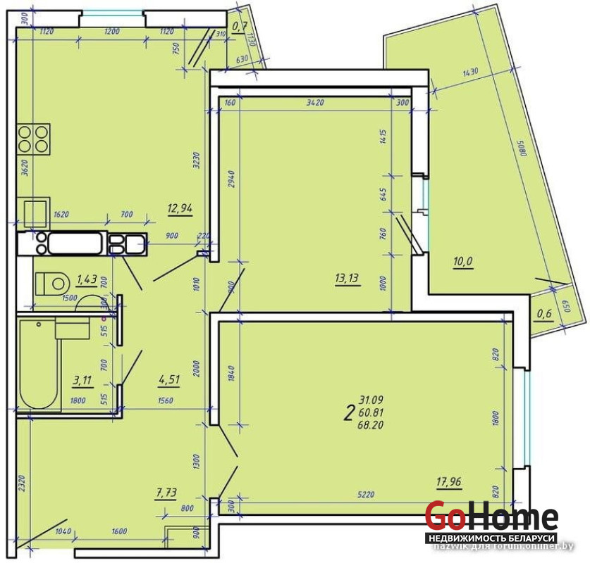 Квартира полностью меблирована (включая встроенные шкафы) и готова к заселению.