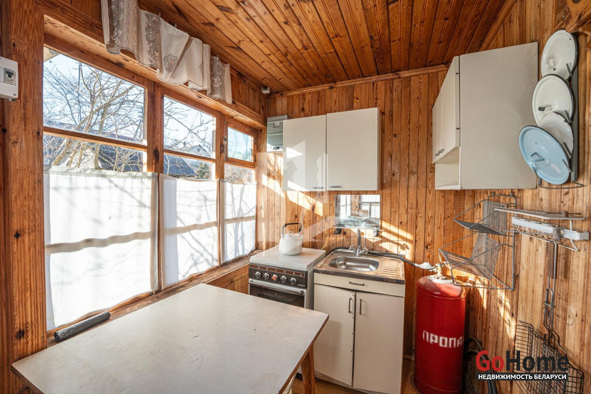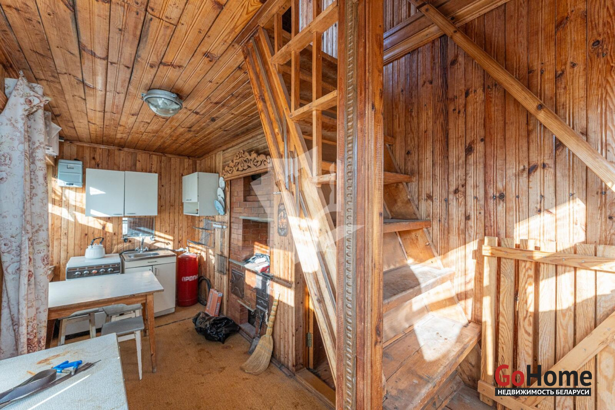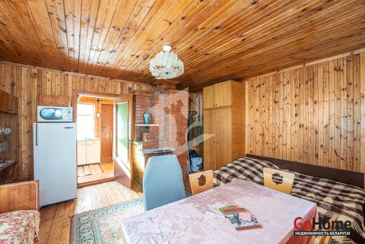 Добротный сухой дом в два этажа общей площадью почти 60 кв. м с гостиной, спальней и кухней, в основе которого настоящий сруб со специальной пропиткой, обшитый изнутри и снаружи деревом. Печь с камином из специального огнеупорного кирпича в гостиной, мебель, газовая плита, холодильник, печь СВЧ, кухонная мойка с раковиной и электрическим подогревом воды.